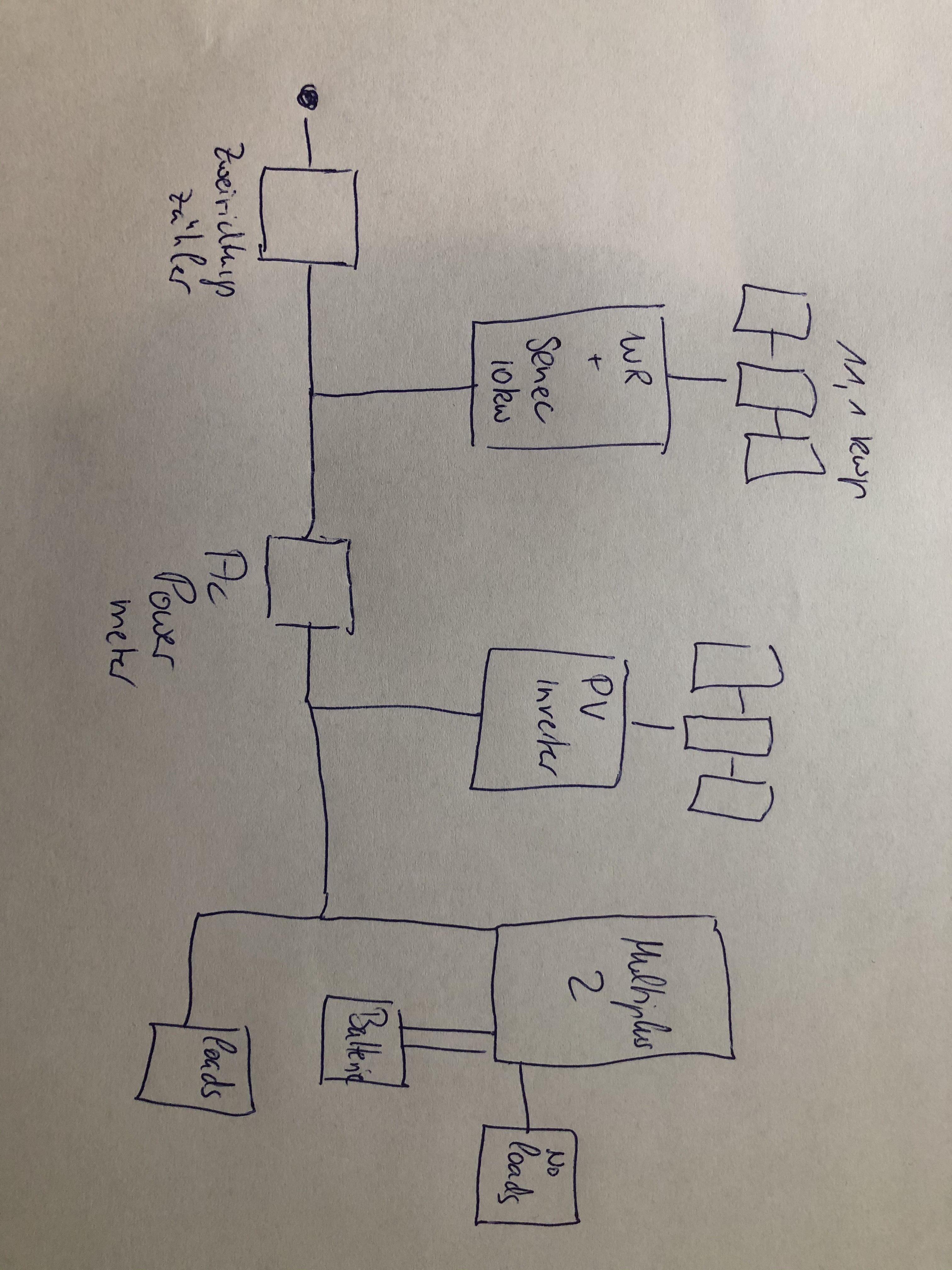 Wenn ich ein separates System zu meinem bestenden Packen möchte, das eine einspeisen soll, das andere nicht. Kann ich das wie folgt manchen oder habe ich da einen Denkfehler? Theoretisch kann doch dann auch der Überschuss aus der Senec Anlage in der Zweitanlage genutzt werden oder müsste ich da eine zusätliche logik integrieren?