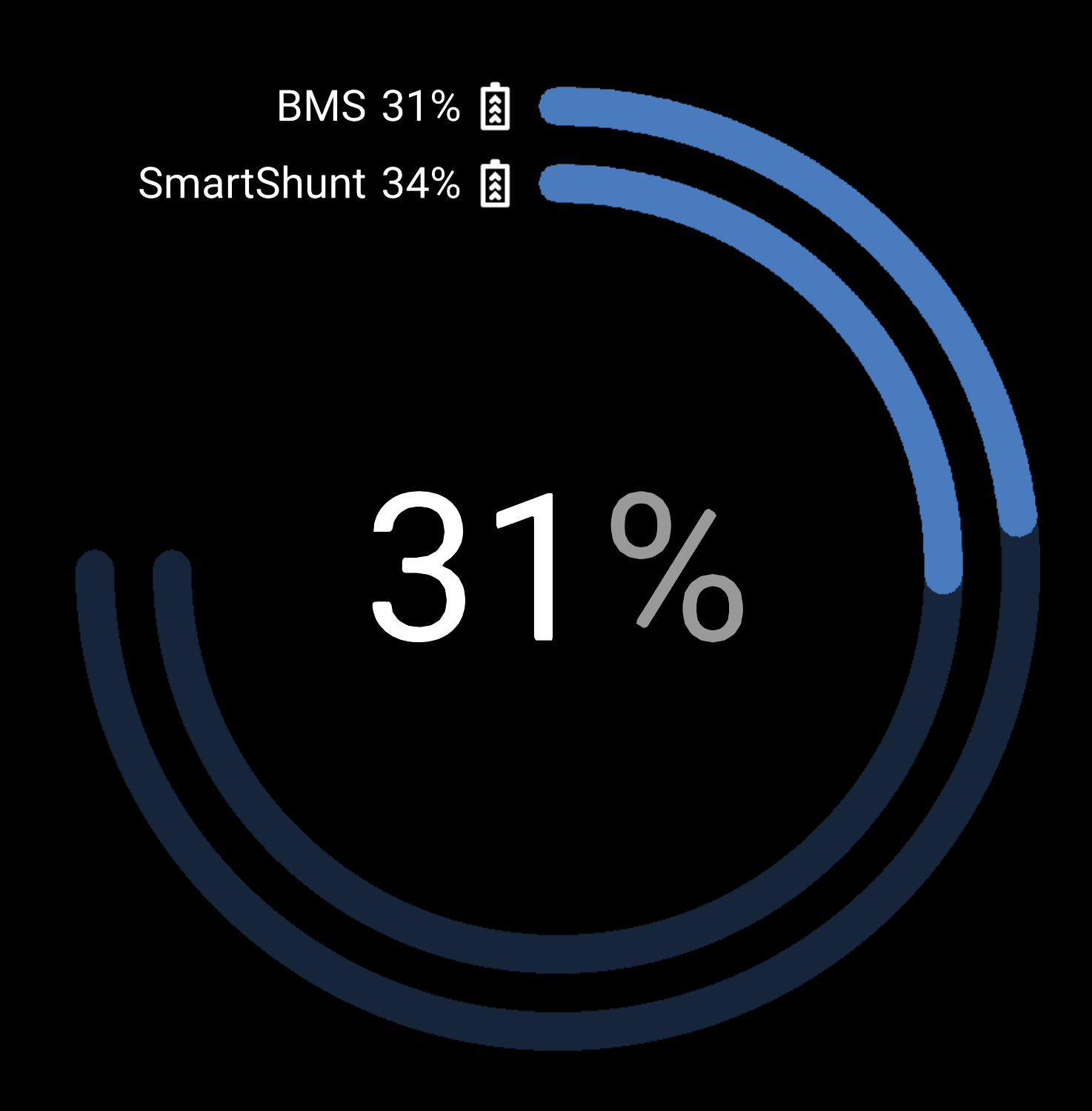 Montag Abend habe ich eine 100% Ladung vom Akku gemacht, Smarshunt und BMS haben 100% Reset gemacht. Jetzt zwei Tage später weißt der SOC schon 3% Differenz aus.