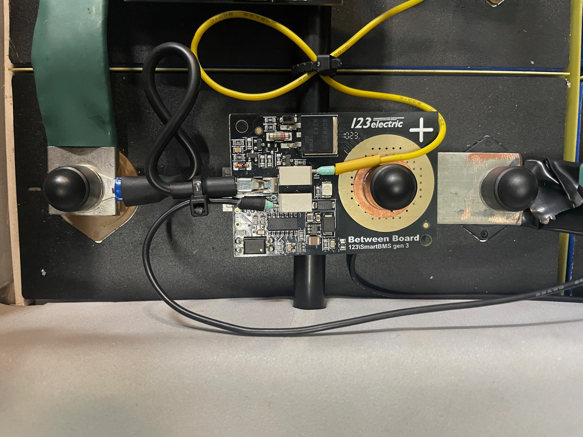 Das funktioniert so nicht, Kontakt der Zelle ist der Alu Pool ganz unten, der Bolzen ist aus Stahl und dient nur als Befestigung, wenn du eine Mutter dazwischen hast, dann fließt der Strom über die Mutter… Eigentlich müsstest du die Platine direkt auf den Zellverbunder (Busbar) legen und dann die Mutter…