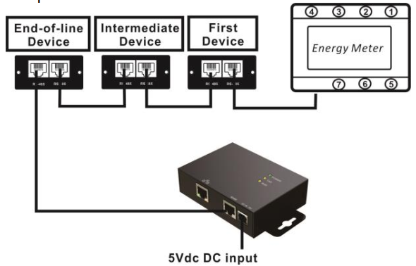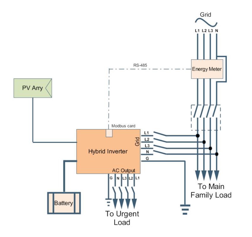 Ich hatte es am Anfang so verkabelt. Habe es aber wieder rausgenommen, da MPP Solar gesagt hat, wenn die Geräte an einem Energymeter hängen, reicht es, den Modbus durchzuschleifen.