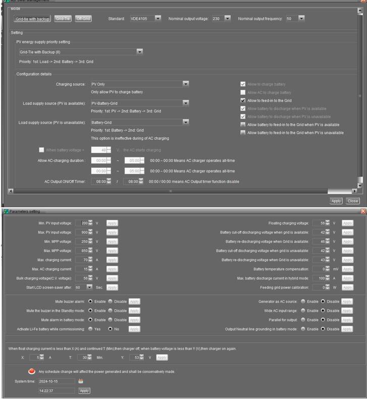 Bei ein paar Test habe ich leider festgestellt das nur der 1. Wechselrichter aus der Akku zieht und bei 5kw Schluss war. Bei mehr Leistungsbedarf im Haus wurde aus dem Netz gezogen.