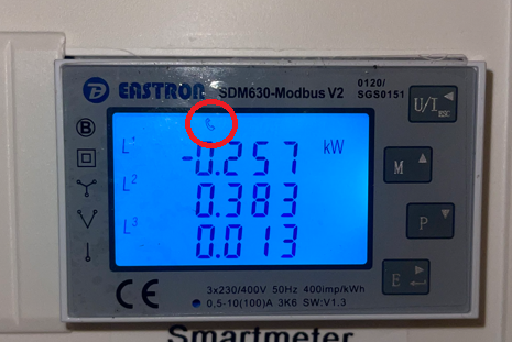 Im Display vom „Eastron SDM630 V2“ muss der Hörer blinken wenn er Verbindung zur Modbuskarte im WR hat.