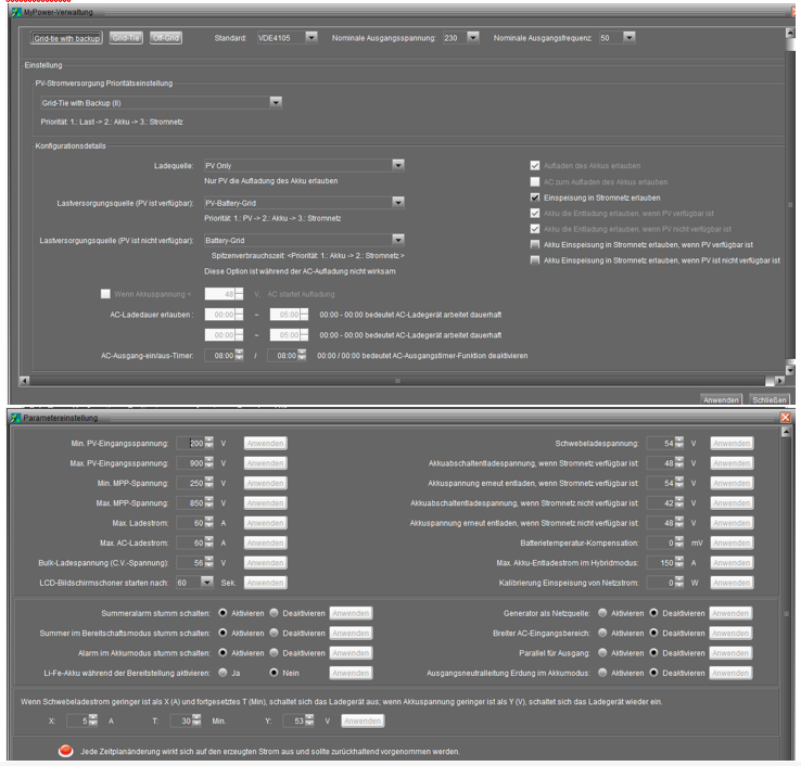 Jetzt lief der WR im Parallelbetrieb und regelte wunderbar die Lastausgleich und Ladung mit dem Akku.