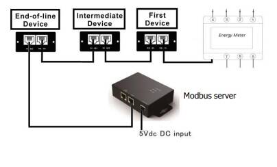 Ich habe die Netzwerkkabel an den Modbus gegen ganz einfache getauscht und die Modbuskarten nach Vorgabe kodiert und mit dem Modbusserver an den Wechselrichter angeschlossen.