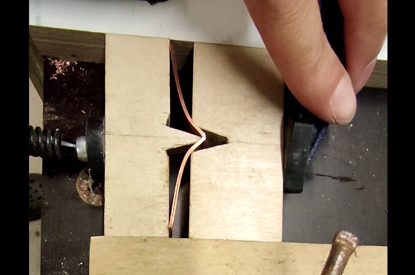 Ausgangsmaterial sind streifen aus kupferblech, 1mm stark und 20mm breit. Davon werden