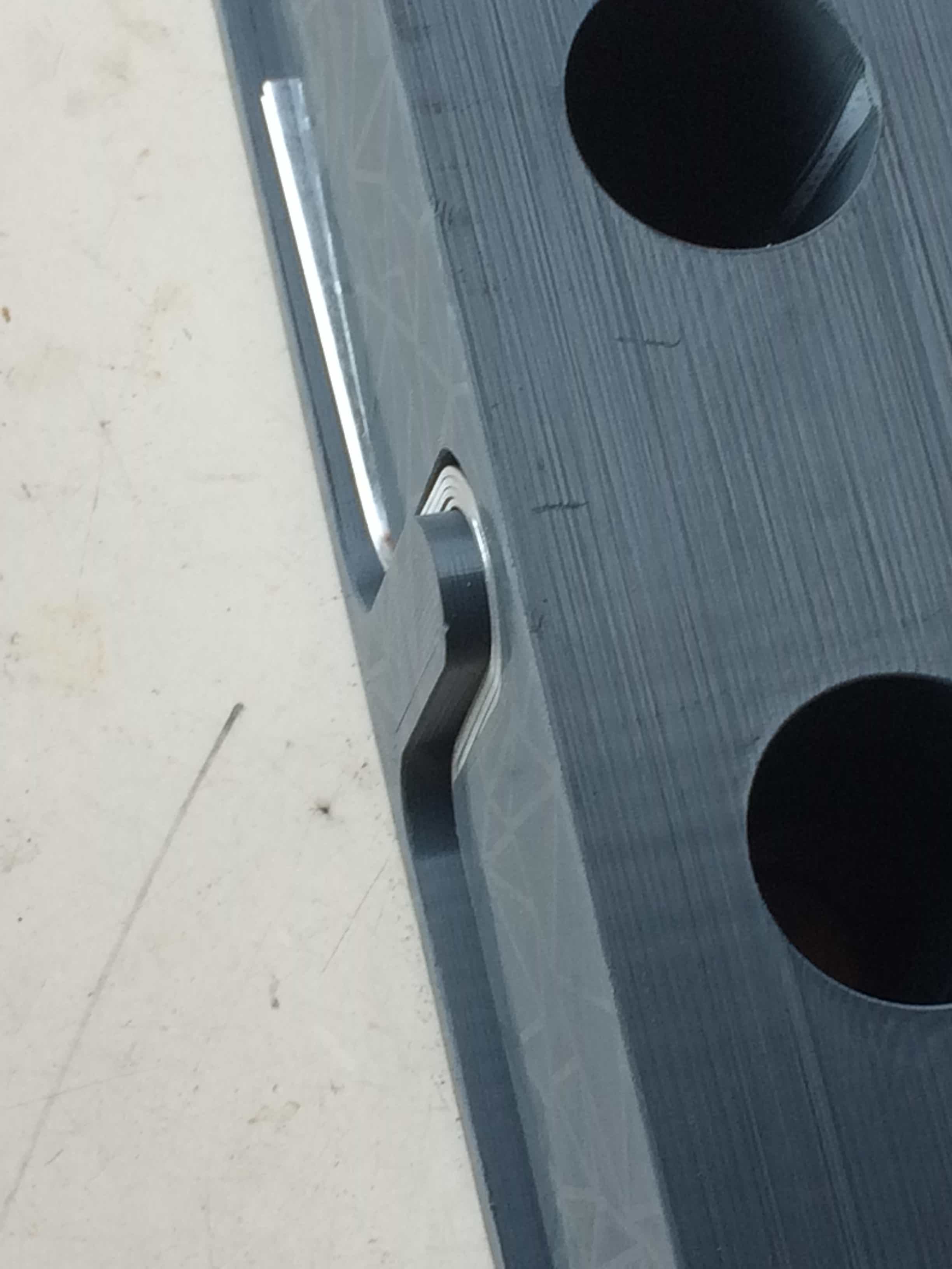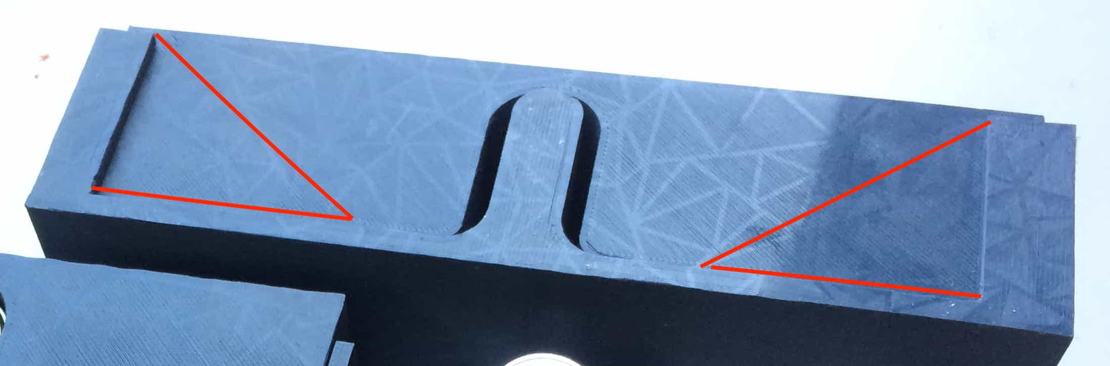 Die Bügelhöhe (selber Modifiziert in die Parametern) > 50 mm fehlt ausreichender Führung am Seitenmitte: Die Führung der Nase sitzt zu tief ins Pressblock: