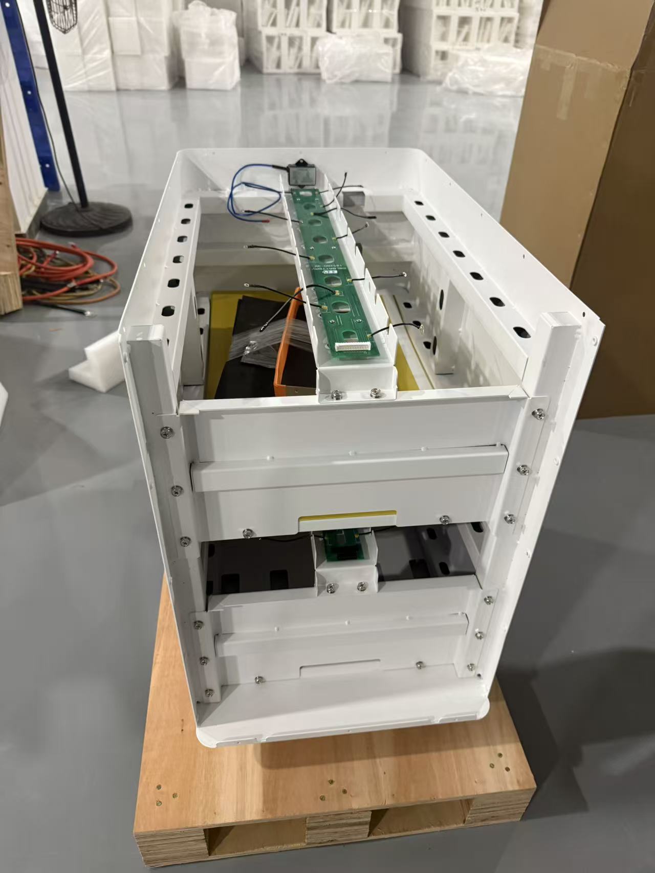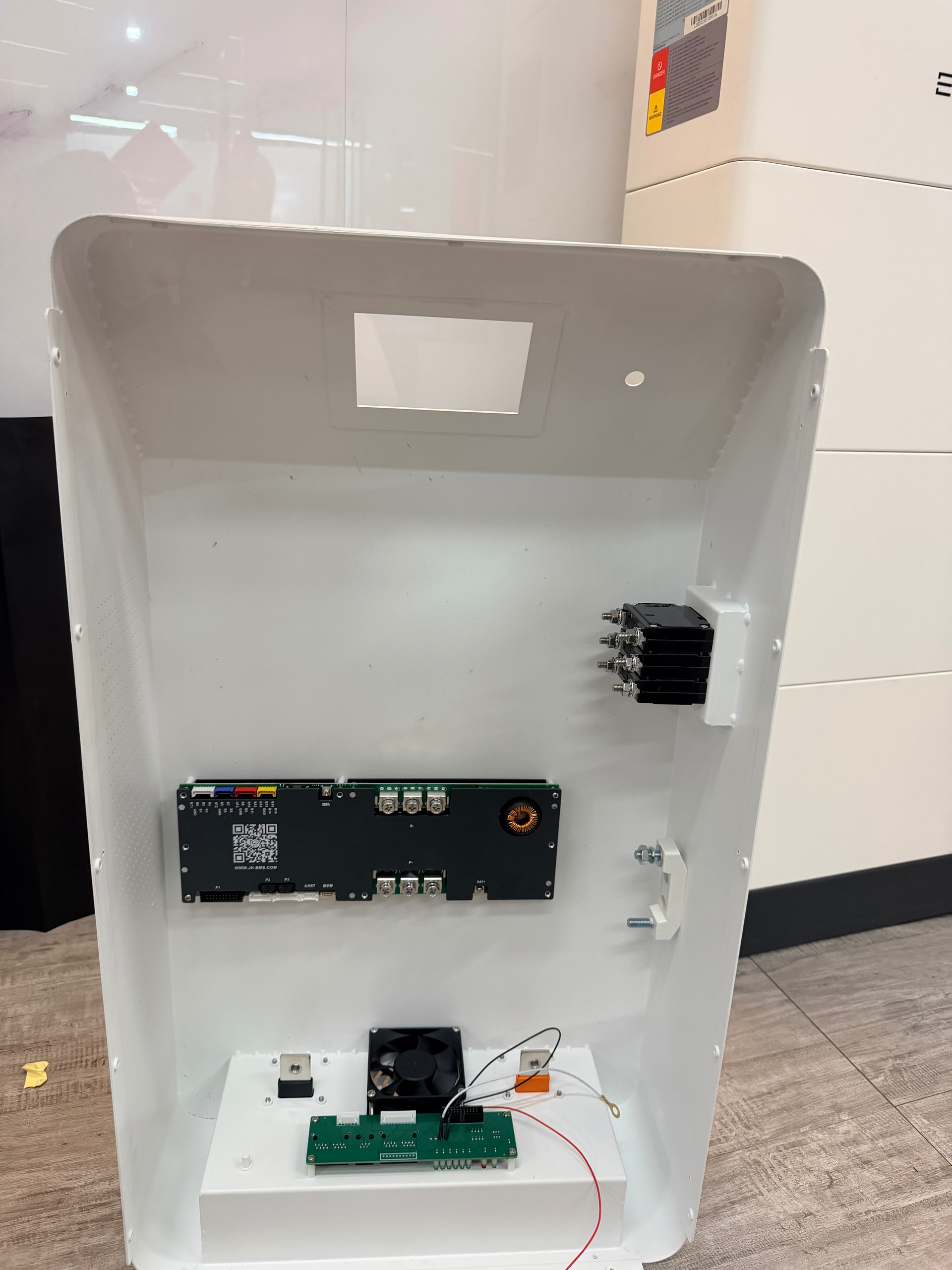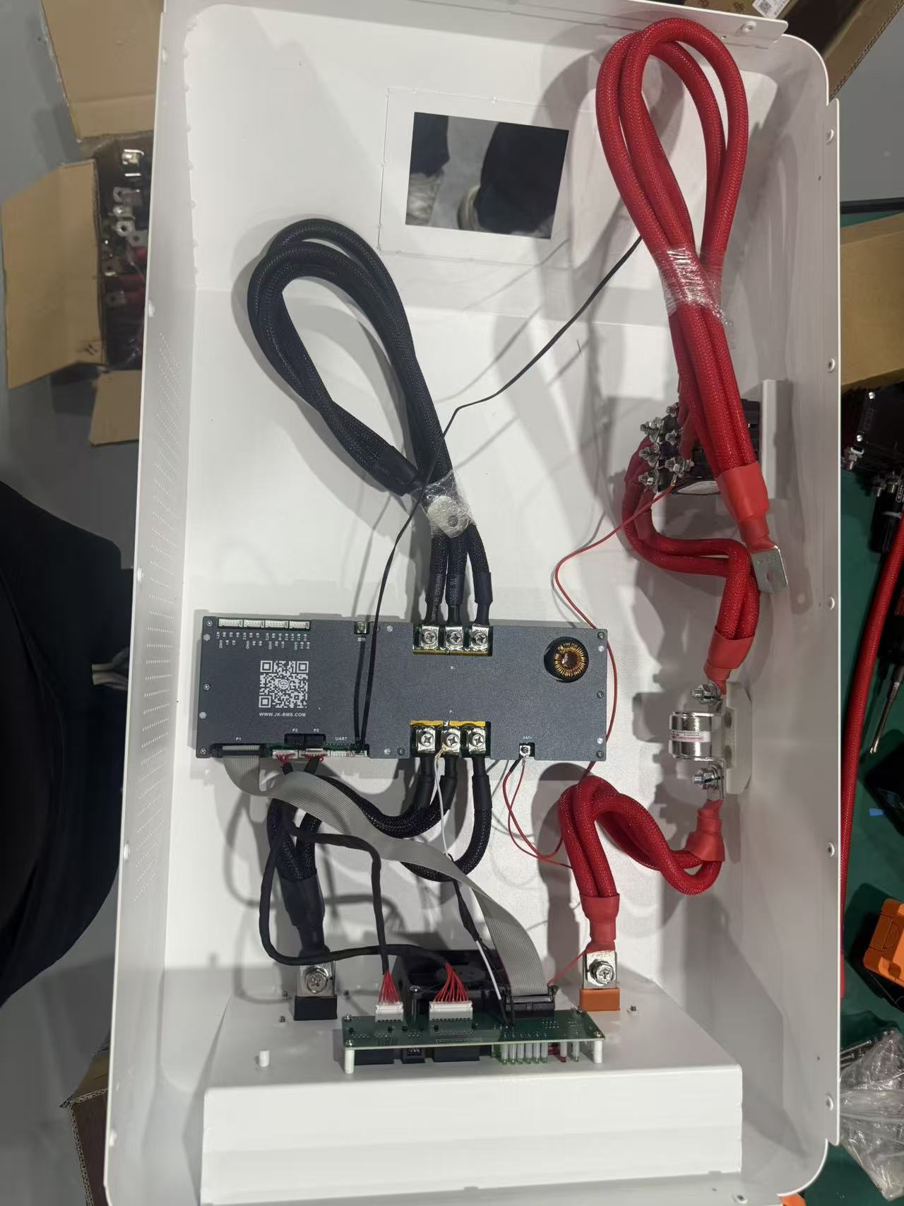 Die Zellen stehen waagerecht, es ist ein 300A Breaker und ein 300A JK-BMS montiert.