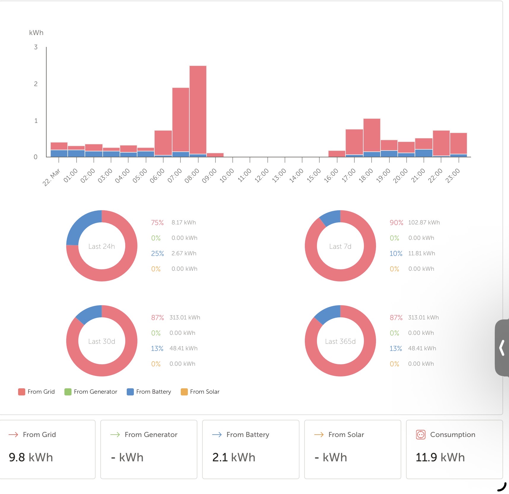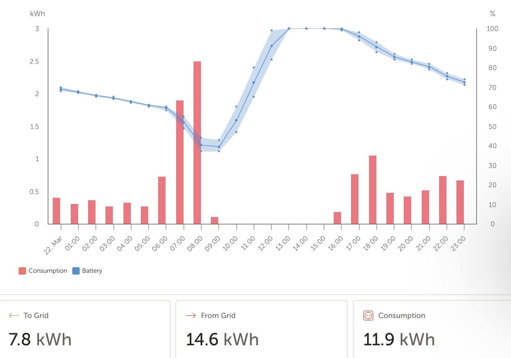 Warum wurde laut Auswertung gestern so viel vom Grid bezogen, obwohl die Batterie gut gefüllt war?