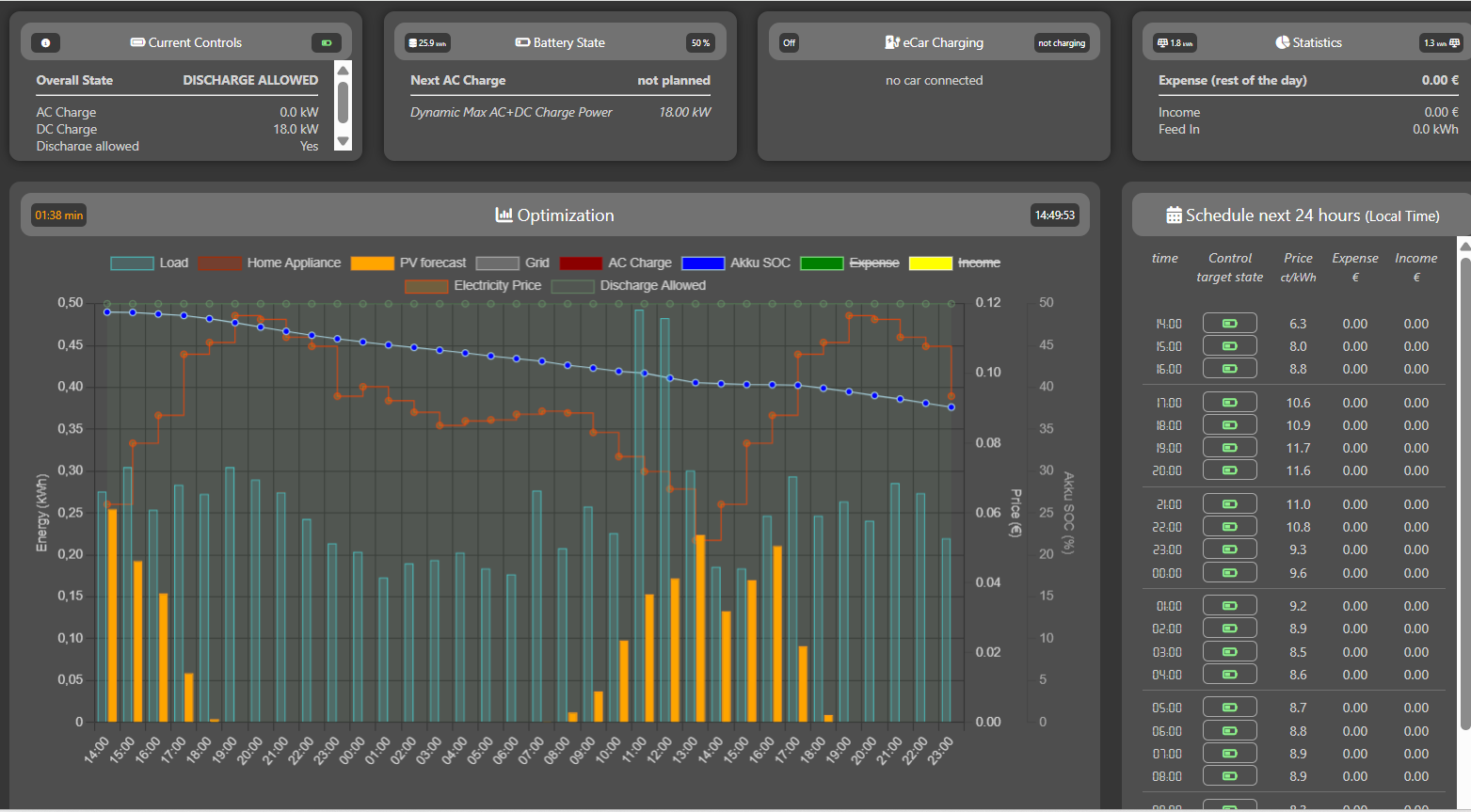 Das EOS (Akkudoktor) läuft inzwischen auch in einem Container meiner Synology und wird via EOSConnect auch in HA visualisiert. Aktuell läuft es aber noch alles anderes als optimal, da ich nicht überall die richtigen Datenquellen und Vorgaben eingebunden habe. Ich nutze es daher auch noch nicht zu Automatisierung. Mal sehen wann ich Zeit finde, hier weiter dran rumzubalsteln. Aktuell hatten erst einmal andere Arbeiten Priorität.