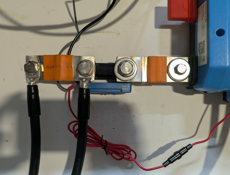 Die Busbars auf der Seite zum Deye habe ich verwendet, damit ich nicht 2 Kabelschuhe übereinandern verschrauben muss. Ich habe sie auch etwas eingekürzt. Da ich die Kabel zum Deye eh mit einem größeren Kabelschuh (M10) versehen musste, habe ich sie ebenfalls gleich noch ein wenig eingekürzt. Keine Ahnung, warum Victron beim Lynx PowerIn M8 und beim SmartShunt M10 verwendet...