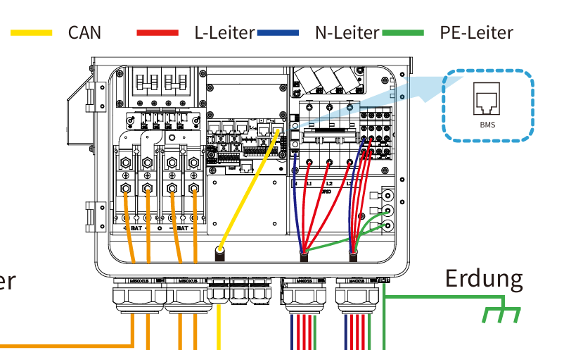 In der Deye Anleitung ist der Load auch nur mit einem Vier Adrigen Kabel vorgesehen, da der PE über den Grid Anschluss und den Anschlusspunkt untem am Gehäuse bereits gegeben ist.