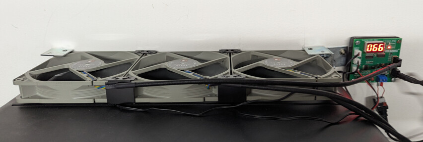 Die zusätzlichen Lüfter lagen ja bisher nur provisorisch oben auf dem Deye. Die habe ich jetzt an die Wand montiert, so dass sie minimal oberhalb des Deye befestigt sind.