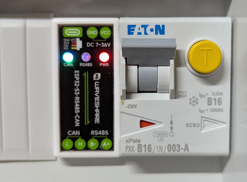 Die größte Veränderung ist jedoch die Installation von YamBMS. Als Hardware dafür habe ich einen Waveshare ESP32-S3-RS485-CAN in der Unterverteilung vom Deye verbaut.