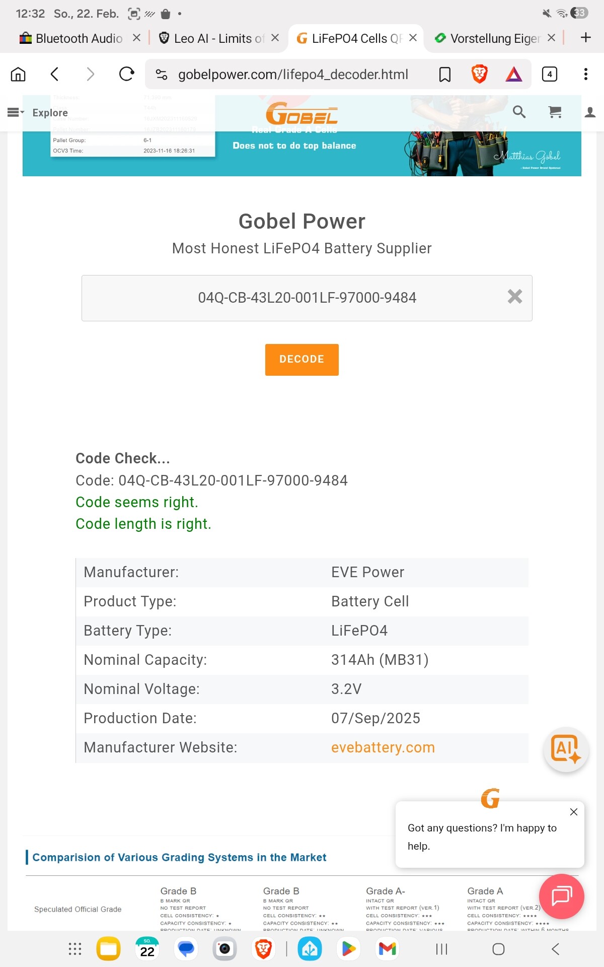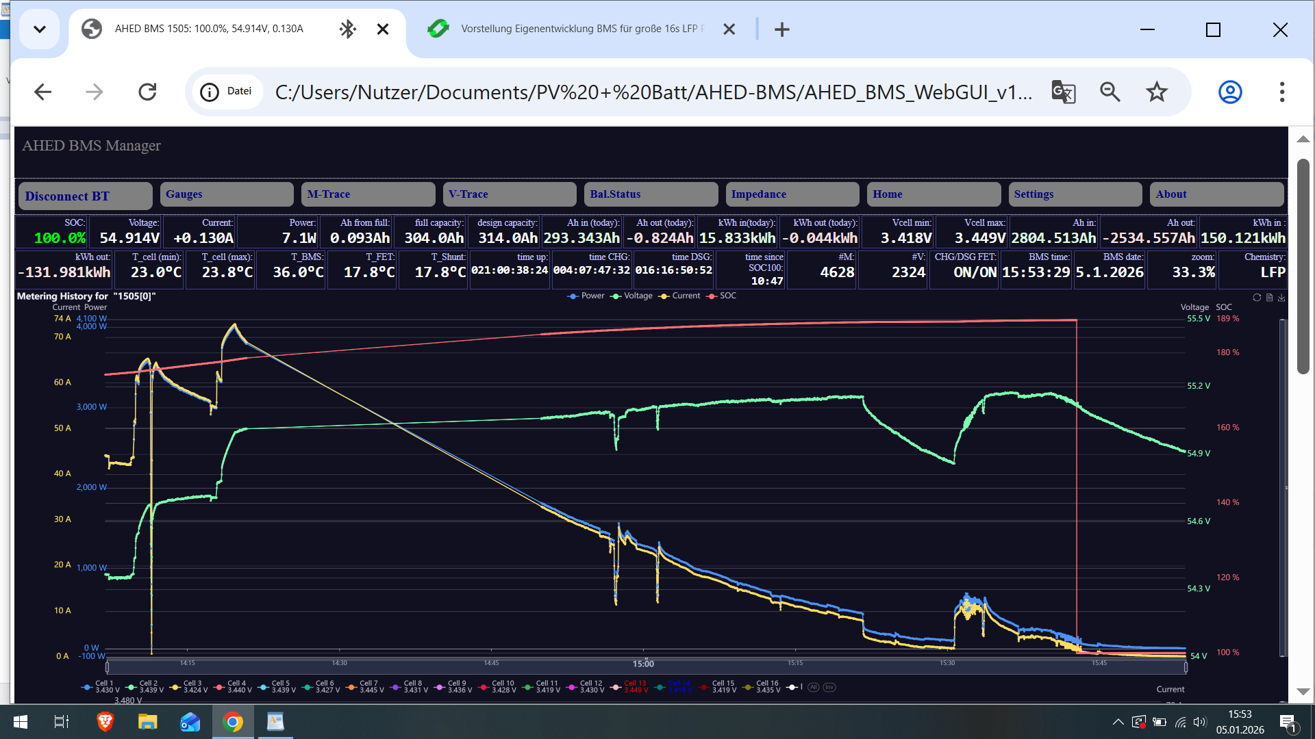 Die Visualisierung der neuen Batterie über die Buetooth-Webseite ist schon beeindruckend. Für mich vielleicht etwas zu wissenschaftlich, aber wenn jemand genau wissen will, was da in den Zellen vor sich geht, erscheint mir das ein sehr gutes Instrument zu sein.