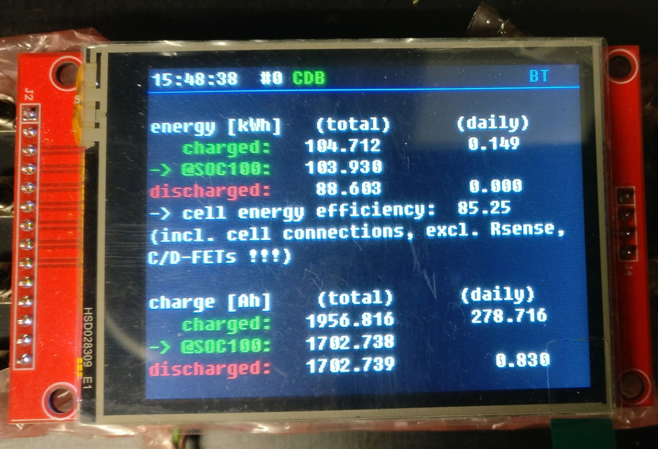 Meine Einschätzung ist, dass, wenn man wirklich ordentliche Ergebnisse haben will, ein Coloumb-Counter direkt an der Batterie ( also quasi noch vor dem BMS ) hängen muss, damit der Eigenverbrauch des BMS mitberücksichtigt wird. Macht man dies nicht, muss man Krücken wie “Charge efficiency factor“ nutzen, die dann mehr oder weniger nach Bauchgefühl gesetzt werden.