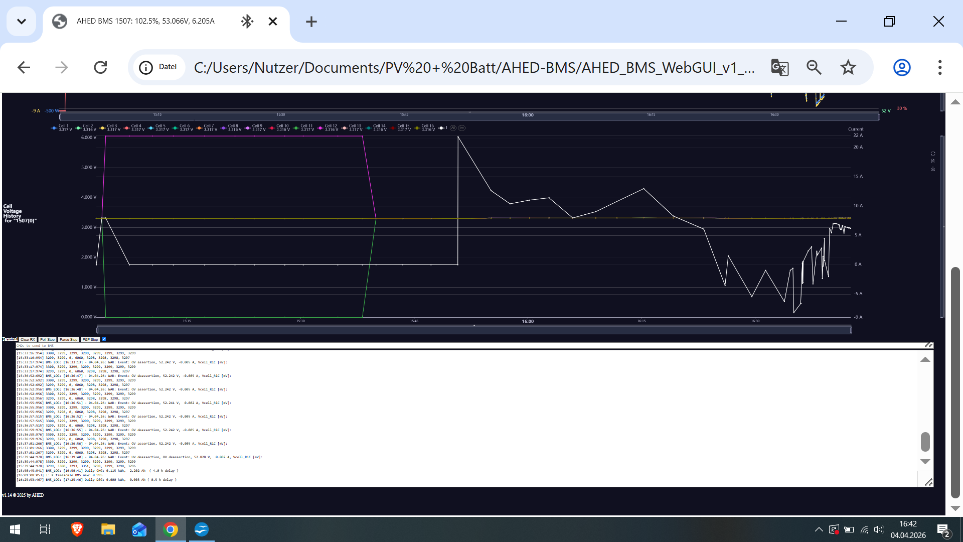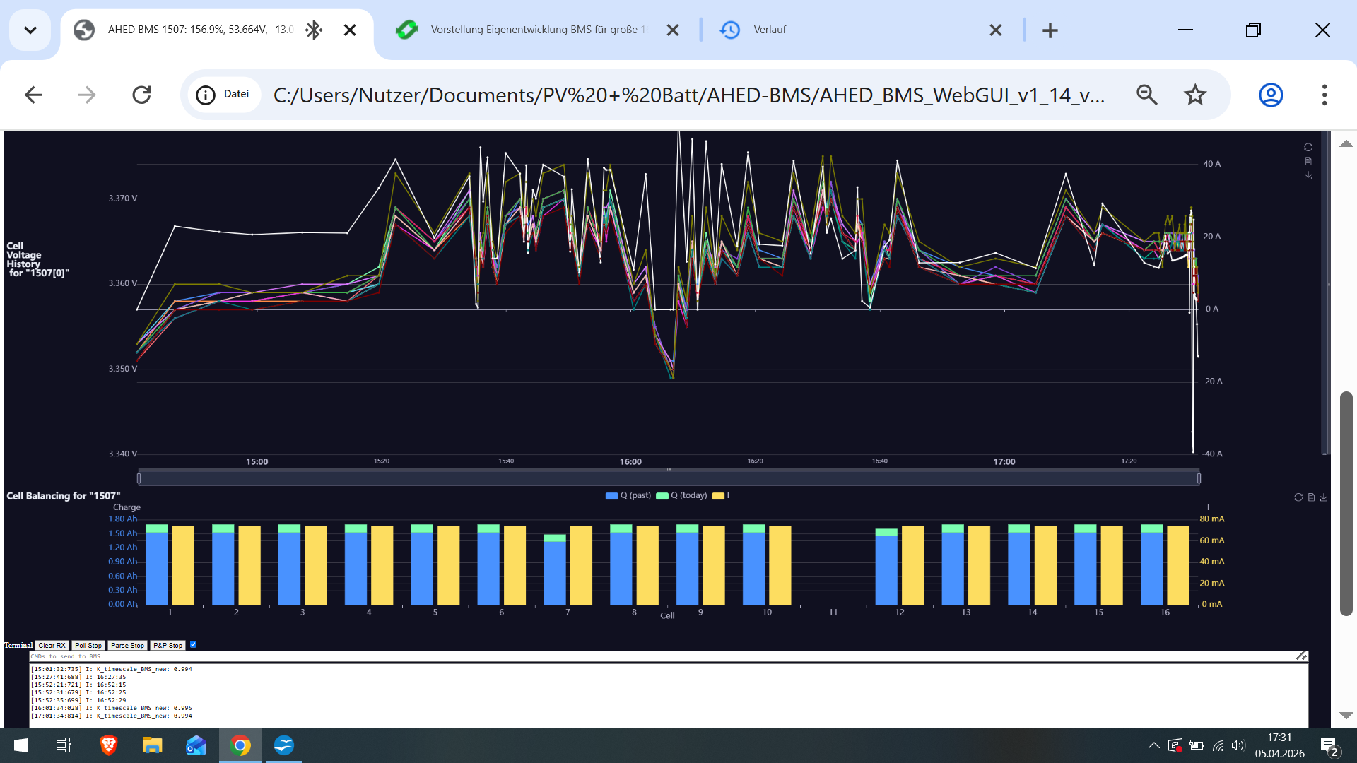 Davon abgesehen habe ich keinerei Pläne, mich aus der Weiterentwicklung des BMS auf absehbare Zeit zu verabschieden und eine der wesentlichen Motivationen hier HW an verschiede Nutzer zu verteilen ist es, Feedback zu dem BMS aus anderen Perspektiven zu erhalten und es darauf basierend weiter zu verbessern. Wenn also jemand mir plausibel darlegt, dass Funktionalität ergänzt werden sollte, werde ich das gerne umsetzen und dann allen per FW Update zugänglich machen.