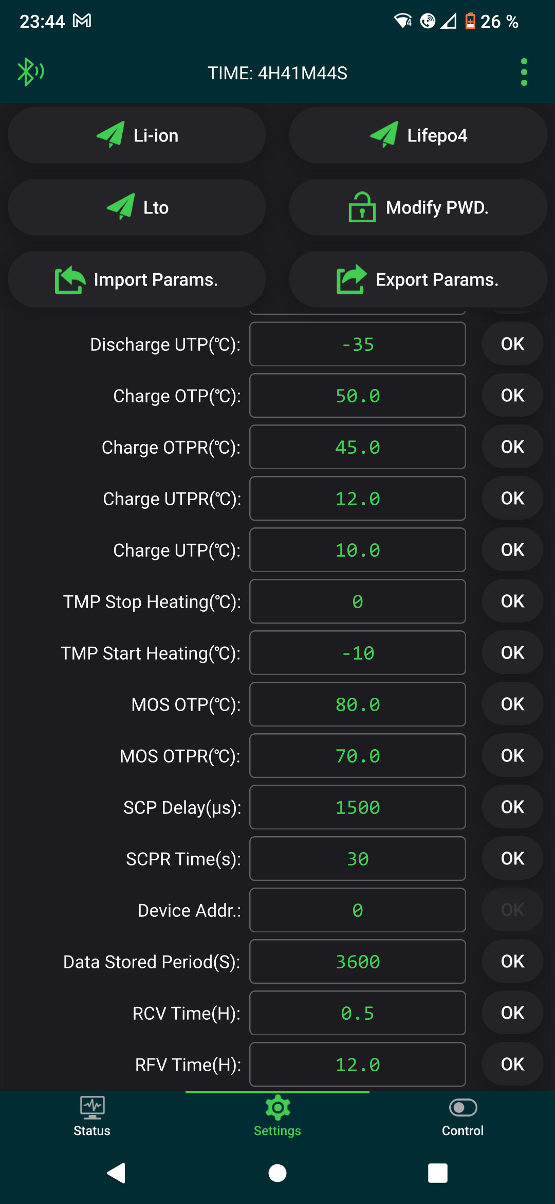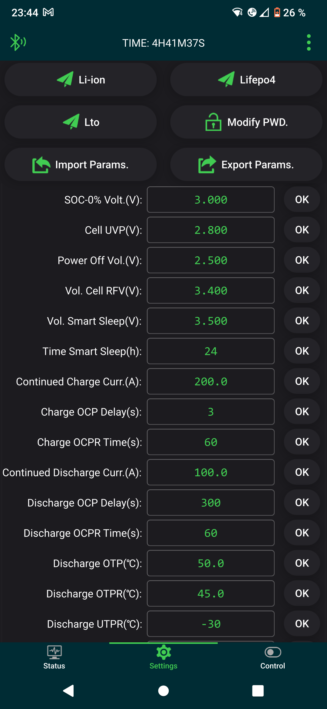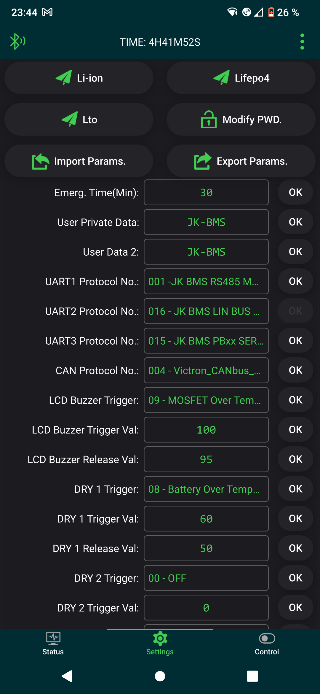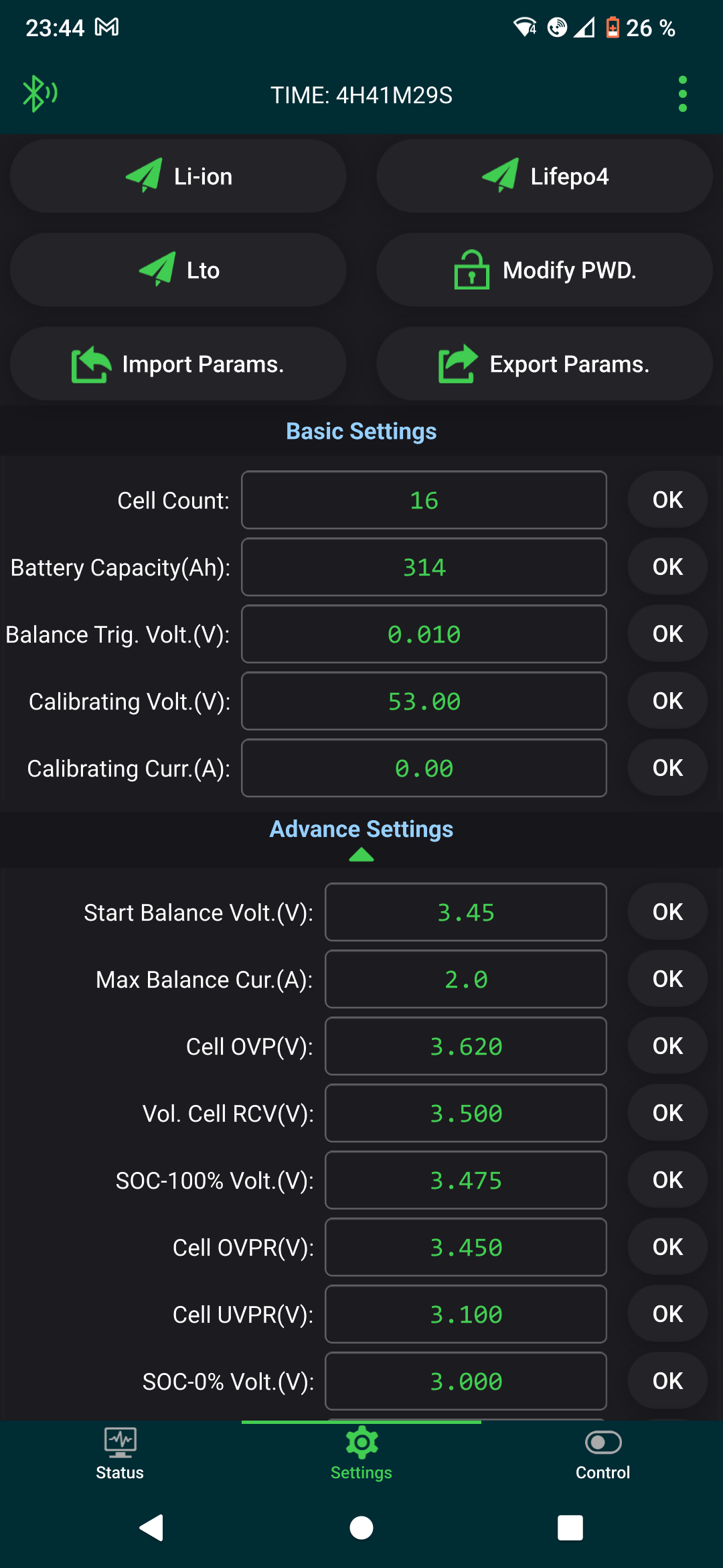 Das BMS habe ich nach folgenden Beitrag eingestellt. Klick Folgende Punkte konnte ich aber nicht ändern (fehler beim speichern). Ich denke die sind aber nicht sooo wichtig.