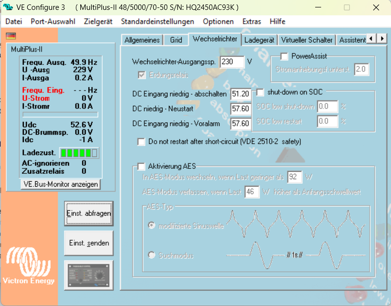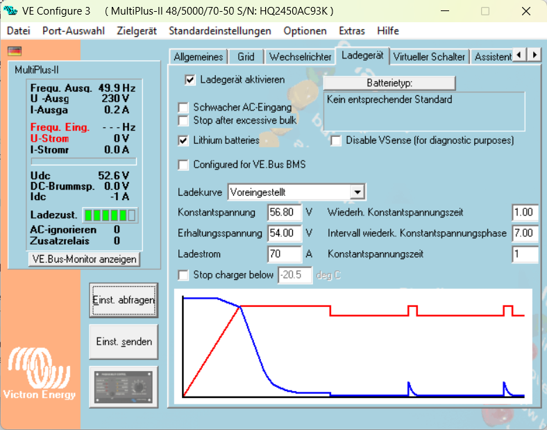 Den Multipluss habe ich über VE Configure 3 und Hilfe eines Youtube Videos configuriert.