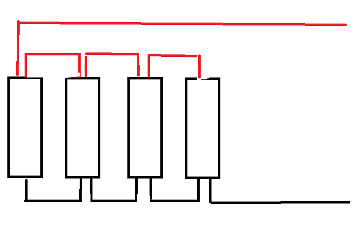 So einfach ist das nicht. Auch dicke Kabel haben einen Widerstand und damit bei Strom einen Spannungsabfall. Der Ansatz alle Batterien mit gleichlangen Kabel an die Sammelschiene hat den Grund den Gesamtstrom gleichmäßig auf die Batterien zu verteilen.