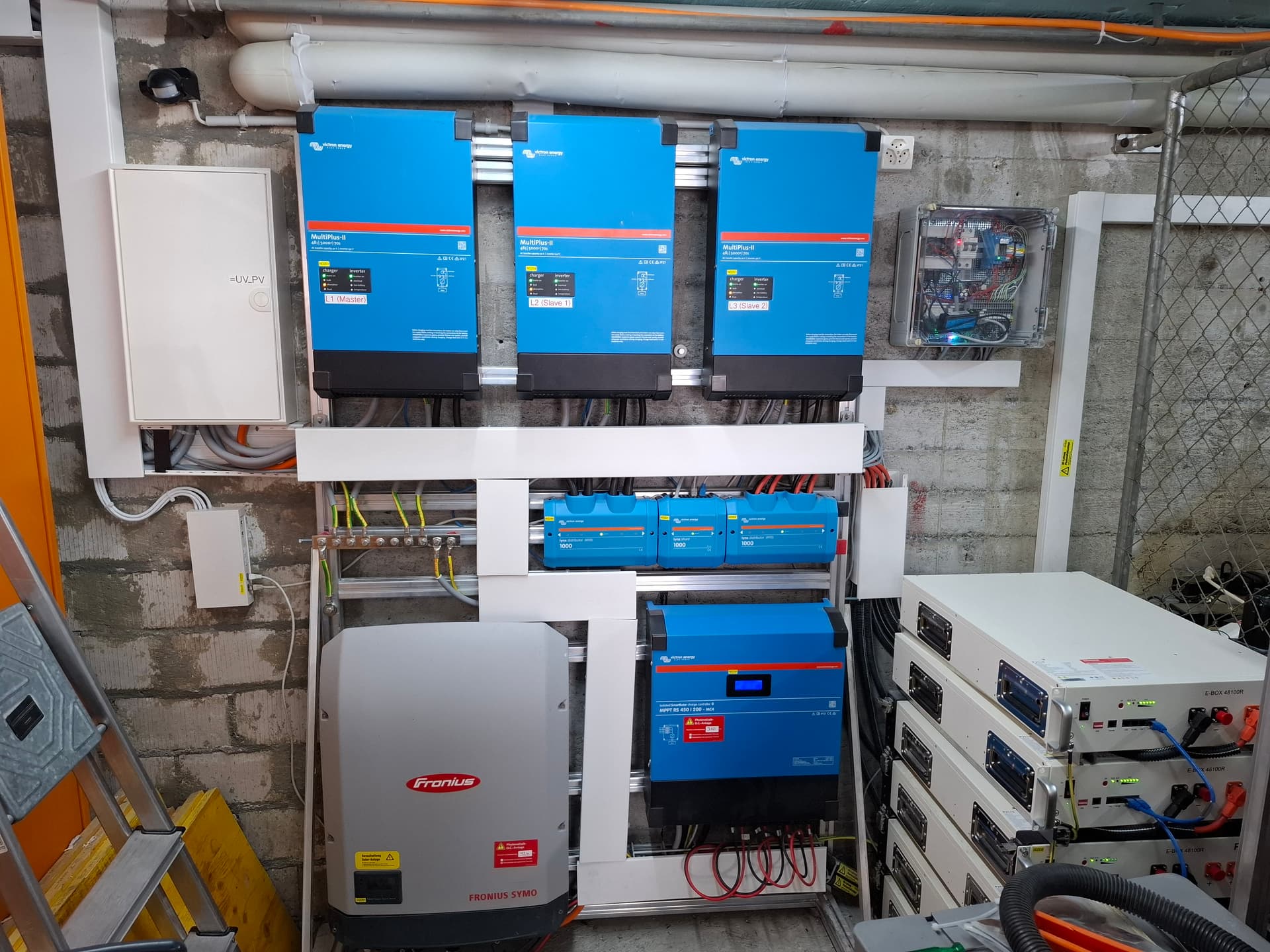 ich habe bei mir ein Victron-System aufgebaut mit drei MMPT's für OST/SÜD/WEST Strings, einer DIY-24V Batterie und einen Multiplus II. Das System funktioniert seit März ohne funktionale Probleme. Also eigentlich alles super.