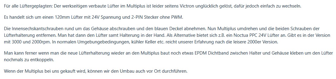 Bei mir allerdings ohne diese Victron Kid. Ob der Lüfter nun sooo viel bringt, werde ich sehen.