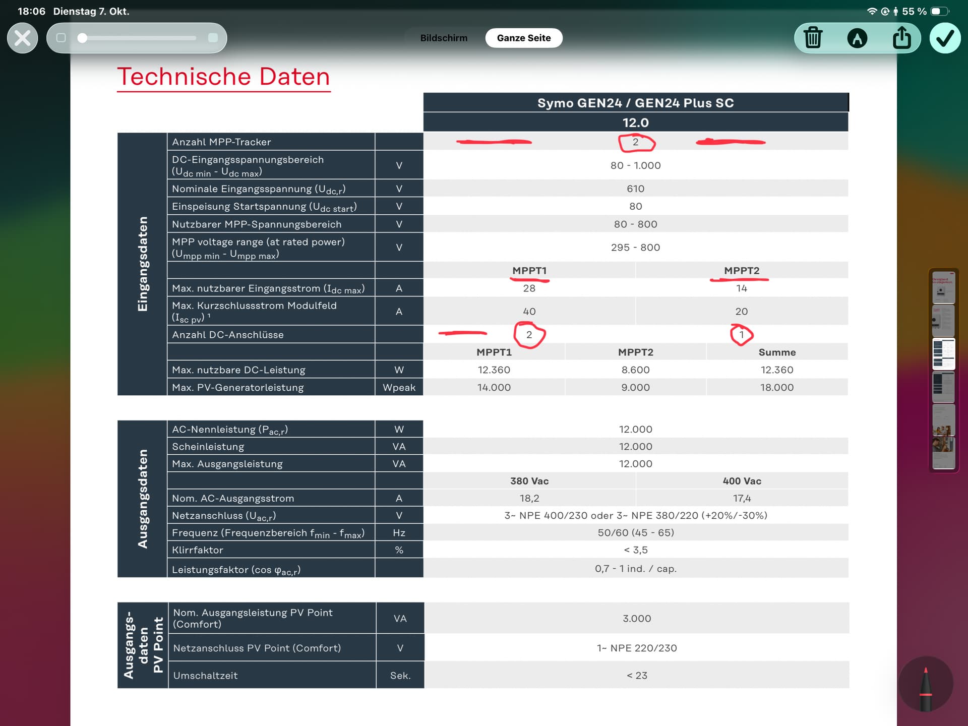 MPPT1 hat zwei Anschlüsse, Max. DC Leistung 12.360 W — hier könnte ich doch 6 x 475W. OST. Und. 5 x 475W. SÜD. Anschließen. Und am MPPT2. 9x 475W. WEST