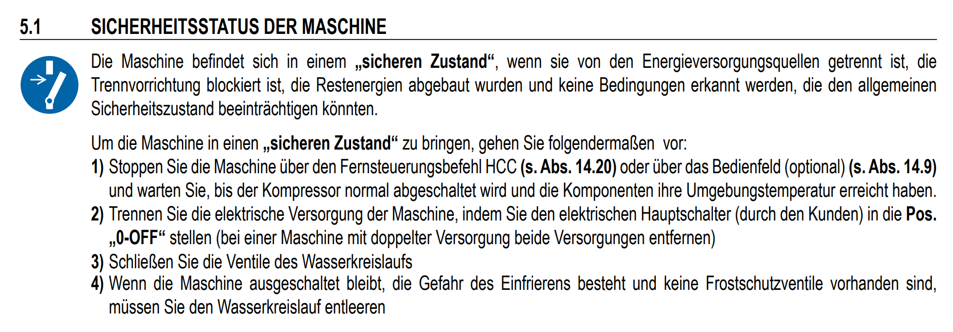 Und der sichere Zustand ist gegeben, wenn der Wasserkreislauf entleert ist. (Wobei hier nicht darauf eingegangen wird, was das für den Wärmetauscher bedeutet)