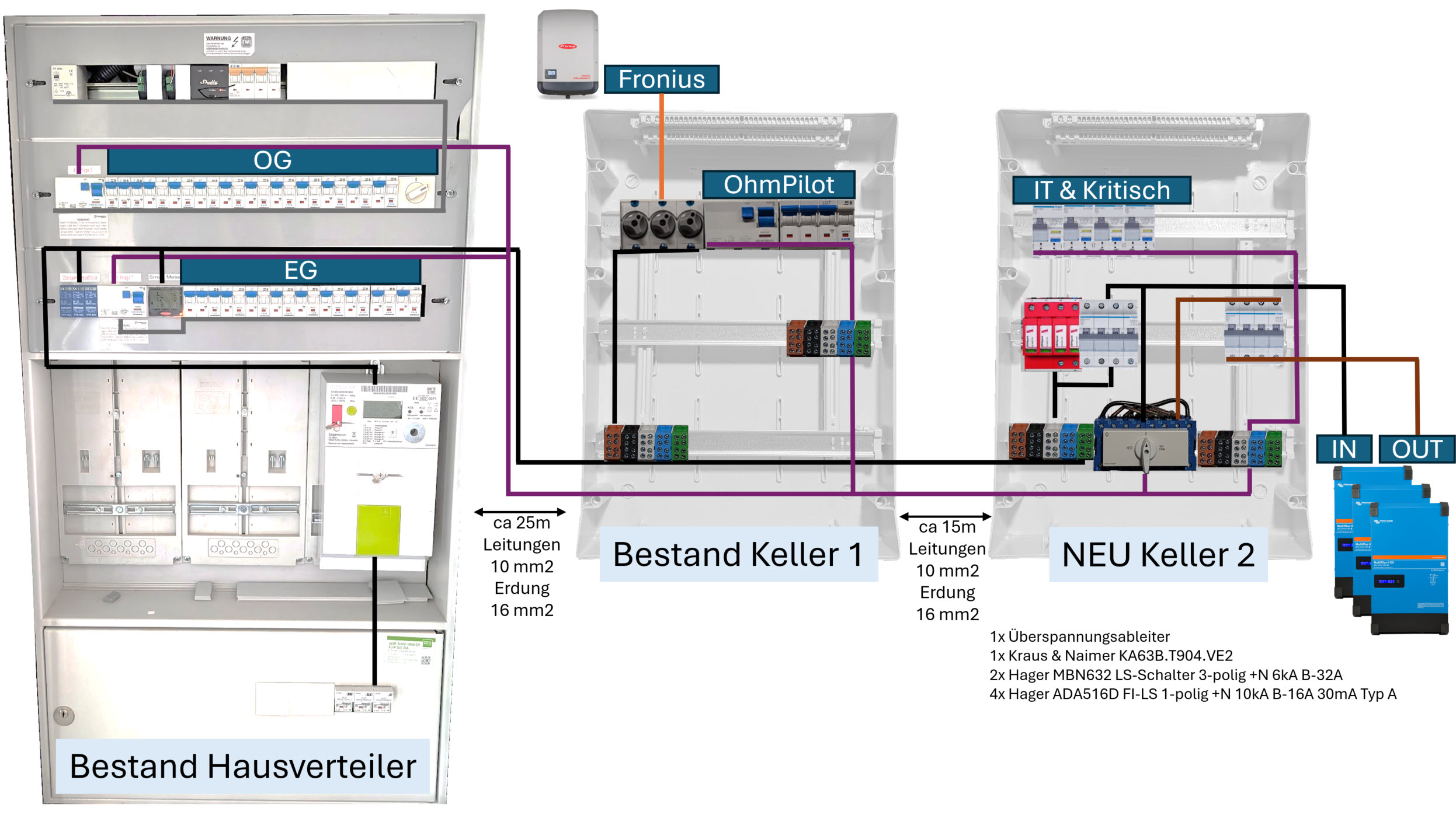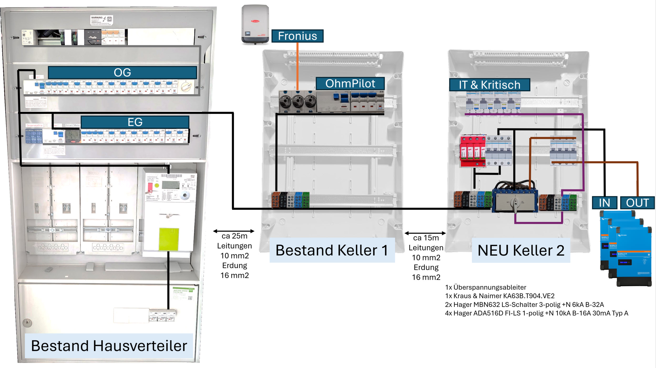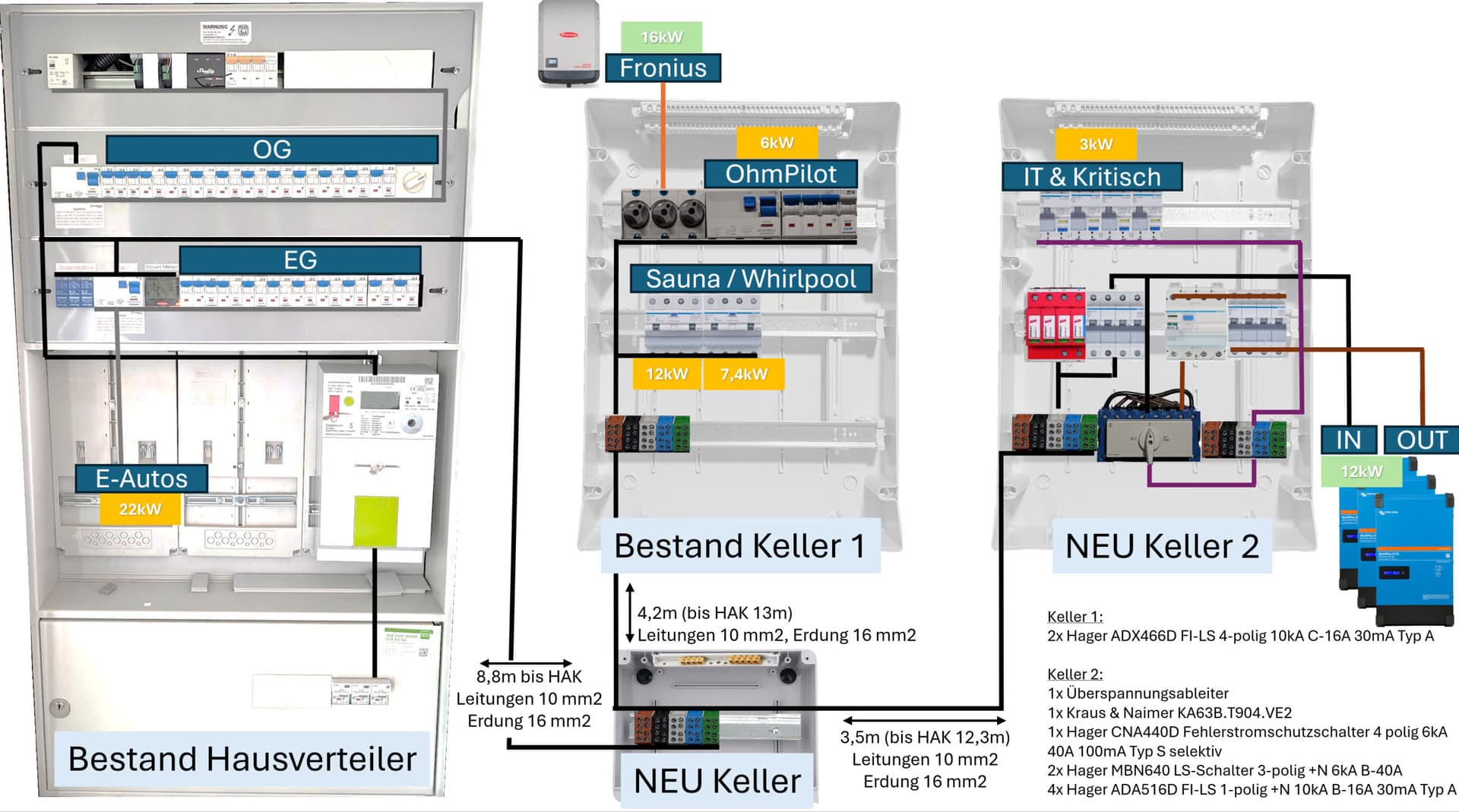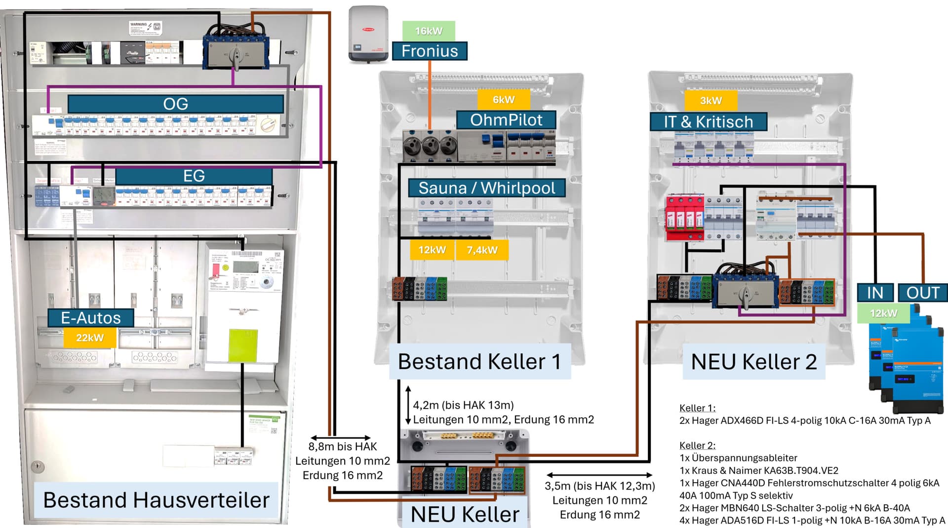 Danke in Phase 2 werde ich schauen den netzumachalter nach vorne zu bekommen - leider gibt's nicht viel lehrverrohrung zwischen dem Haupt Verteiler und dem Keller werde aber schauen ob irgendwo doch 25mm2 reinpassen würden - wie kommst du auf 70m? Sind max 40m wie angegeben. Siehst du ansonsten noch etwas (wie gesagt Umbau im Bestand ist halt limitiert was da geht)