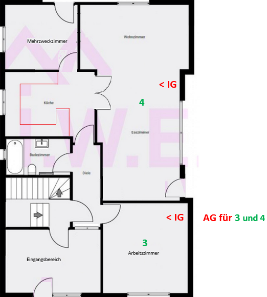 Der kleinere Raum mit den 17 qm wäre mein Arbeitszimmer, welches ich gelegentlich kühlen und grundsätzlich aber nicht auskühlen lassen möchte.