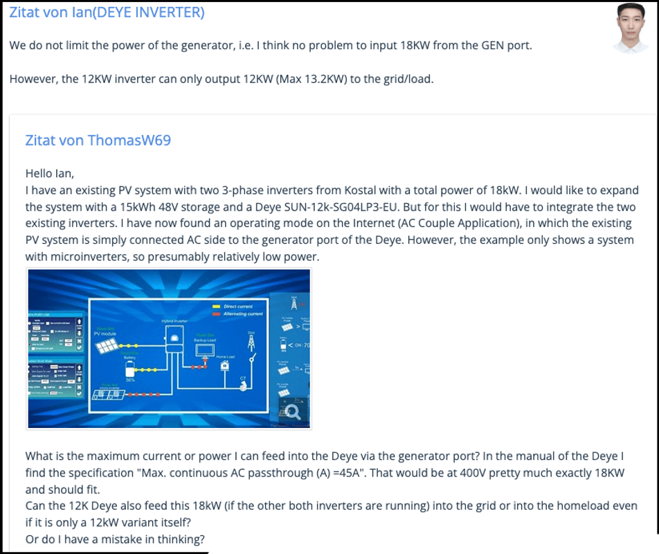Ich hätte da mal fragen zum Deye Wechselrichter..... ich selbst habe einen Victron verbaut der Netzparralell angeschlossen ist.