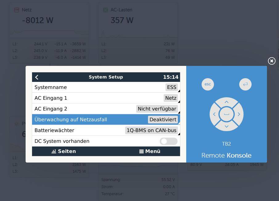 Das kann ich mit meinem SMA Tripower und dem Victron Multiplus nicht. Dafür muss man drei Multiplus installieren.