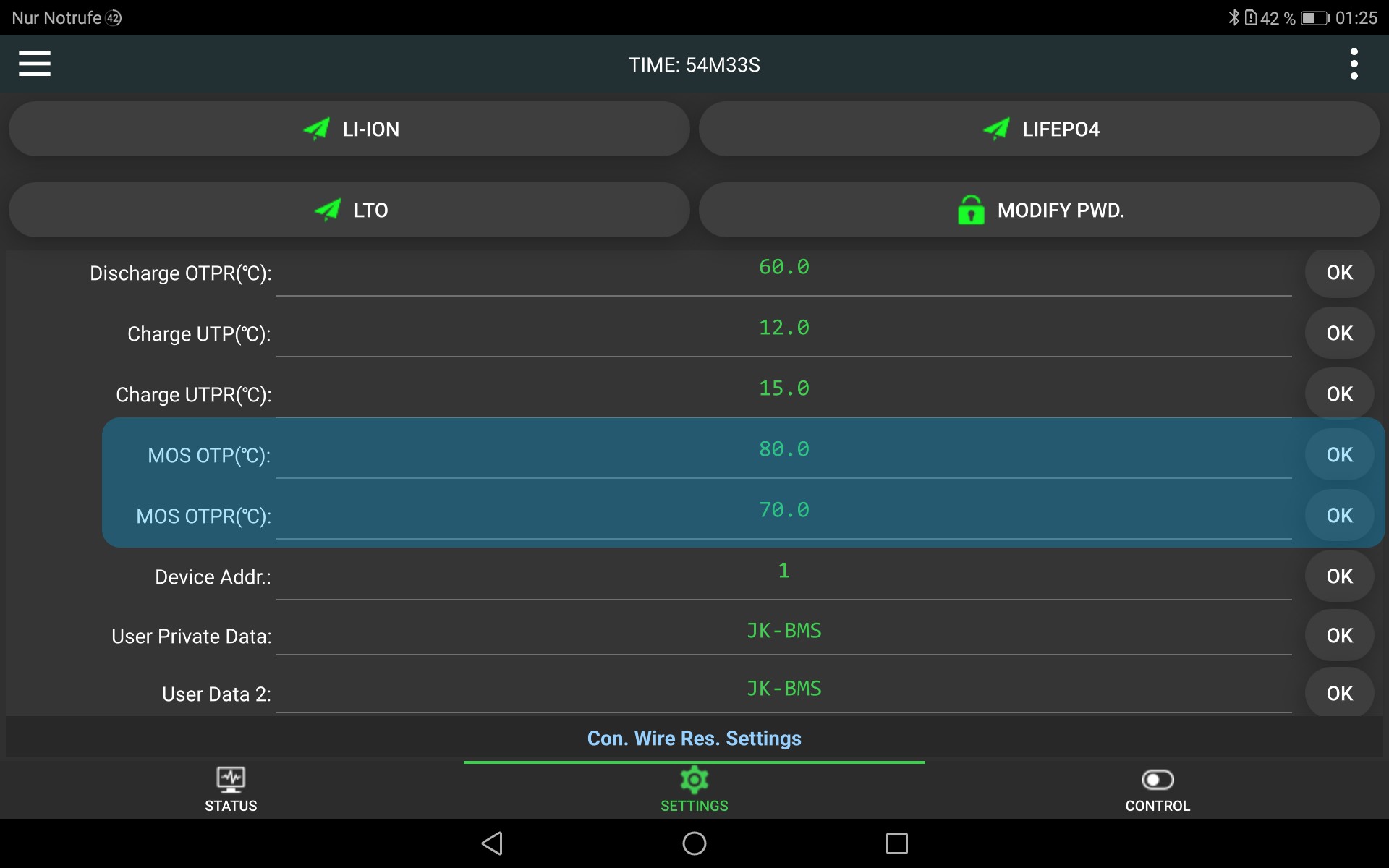 Alles gut, und ich möchte auch absolut nicht dagegen reden das man ein BMS nicht als Schalter nutzen sollte bzw. die Schutzfunktionen als Schalter nutzen sollte, weil ich da exakt der selben Meinung bin wie du und das weißt du denke ich auch. Denn nicht umsonst habe ich so einige Einstellungen garnicht mehr auf dem Schirm wie zb. die erwähnte Mosfet Temp. von @hopfen weil das BMS einfach seinen Job macht, und das ist nichts weiter als die Überwachung des Akkus mit seinen Schutzfunktionen. Erst als letztens die OCP ausgelöst hat war ich seit langer Zeit mal wieder über die App verbunden, allerdings habe ich die Zellenspannungen usw. vom JK auch im Cerbo, und verstellen muste ich noch nie was, einmal eingestellt und es läuft Monate/Jahre ohne das man irgentwas rumfummeln muss.