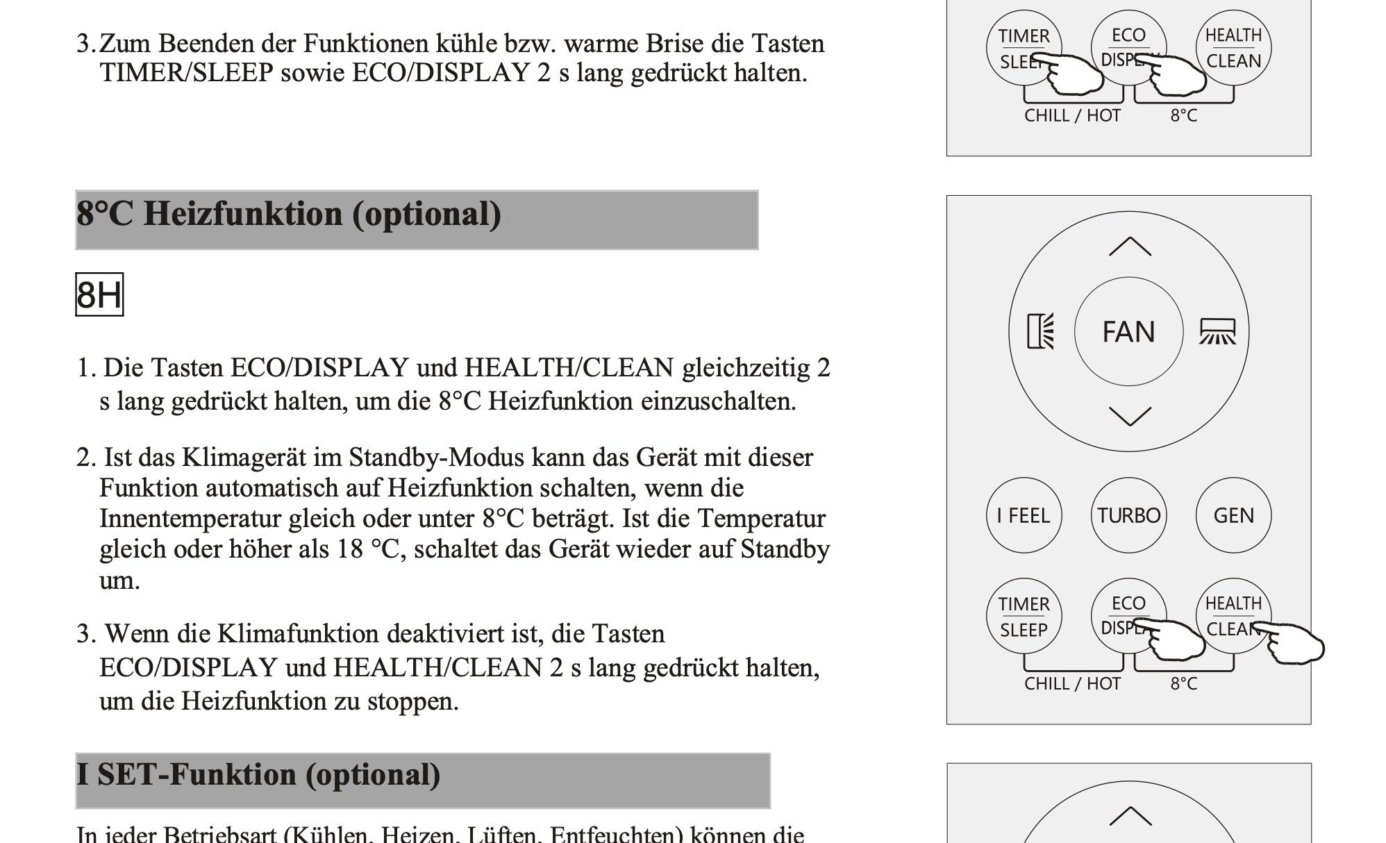 Ich kennen die FP Funktion von TCL und von Midea. Bei beiden wird die Temperatur in dem Modus auf 8°C fix eingestellt. (bei TCL heisst es 8°C Heizen). Das ist also ausschliesslich für den Frostschutz des Hauses, nicht Frostschutz der Klimaanlage selbst. Von welchem Hersteller hast du deine Infos?