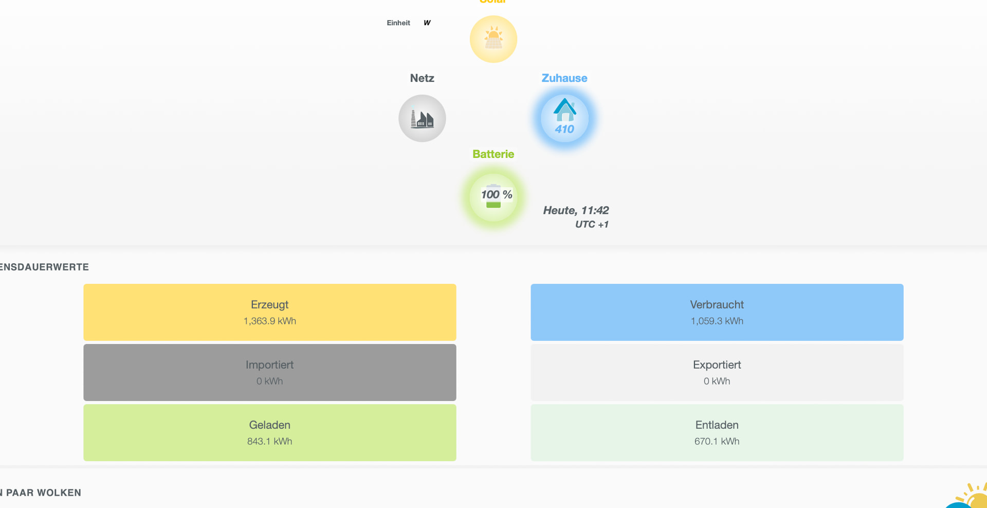 Ab ca. 11:00 morgens ist unser Akku spätens voll und wir können fast nichts mehr verbraten :