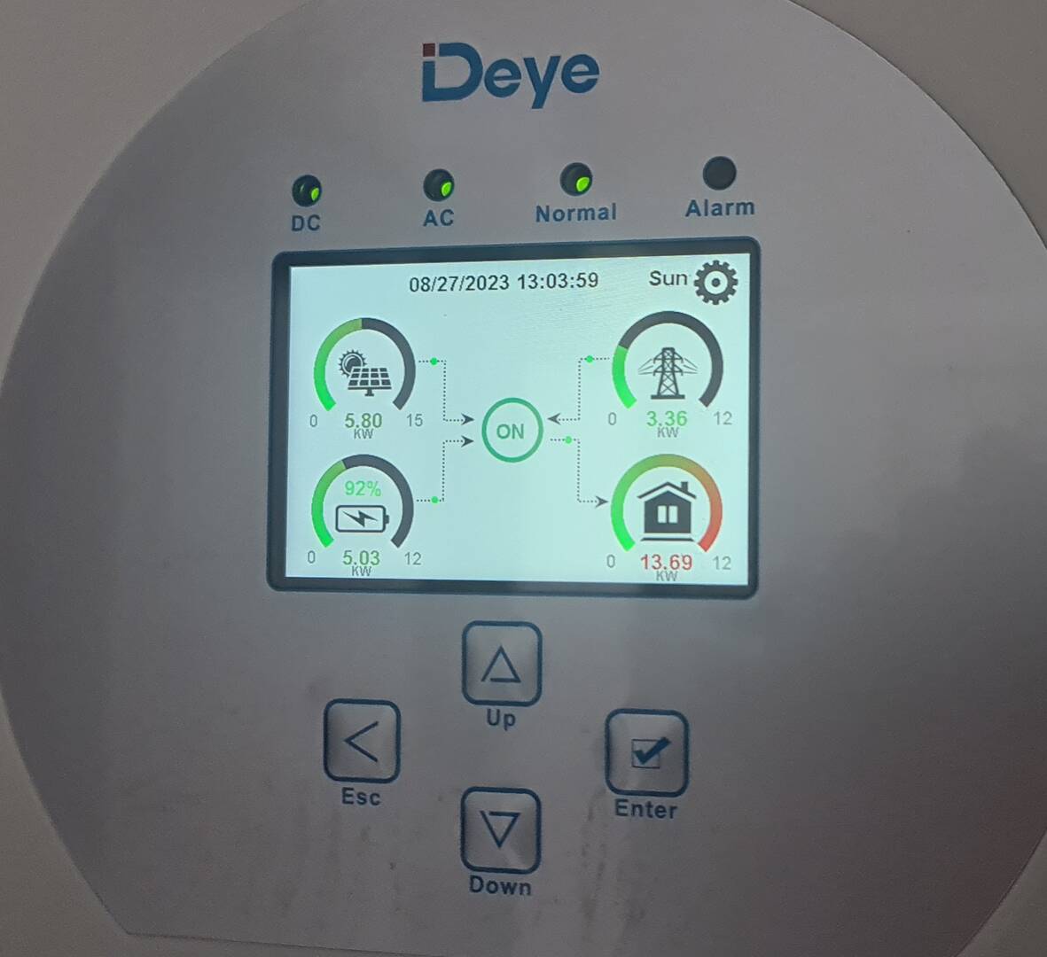 Jetzt versteh ich den Deye gar nicht mehr. Nur die Spülmaschine läuft und der Deye zeigt zzt über 14 kw Verbrauch an. Zusätzlich zieht er aus dem Speicher noch Energie. Pv bei knapp 7 kw.