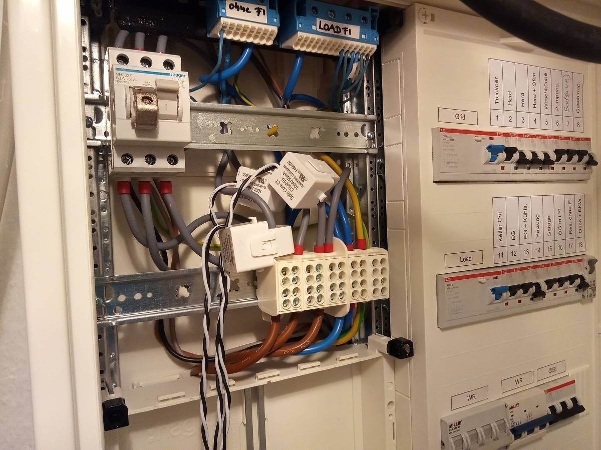 Load läuft seit Mai, Gen/smart seit Juni und Grid wurde erst letzte Woche angeschlossen, die störrischen 6-er Kabel im obigen Bild rechts noch zu sehen.