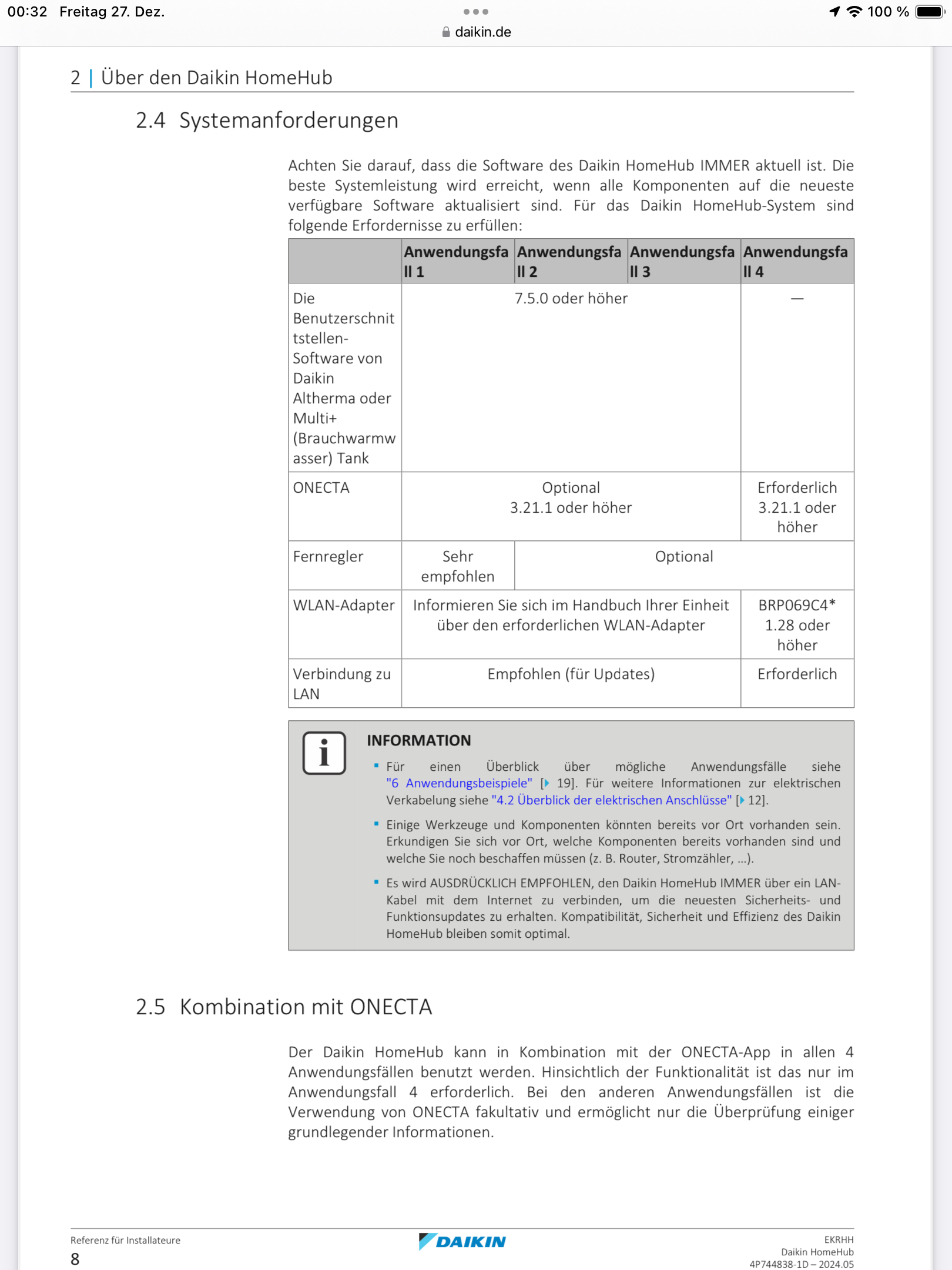 Der HomHub kann für Stylish und Perfera IG, mit einem WLAN-Adapter (BRP069C4*) der 4. Generation, auch in Verbindung mit einem 5MXM90A9 Multisplit AG, nachgerüstet werden.