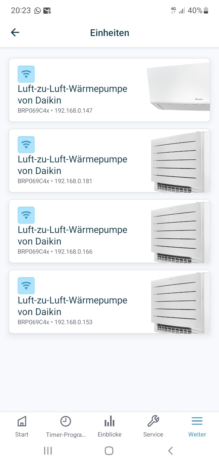 Klimatechniker sagt auch, dass er beim einrichten nur die vier IGs in der App eingebunden hat.