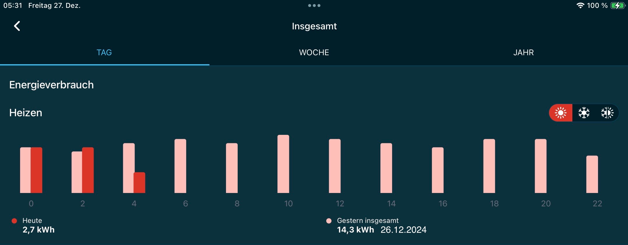 Nein, ich habe die Bedarfsteuerung auf 40% stehen. Die aktuelle Leistung der 3MXM40A ist bei 3 laufenden IG 240W.