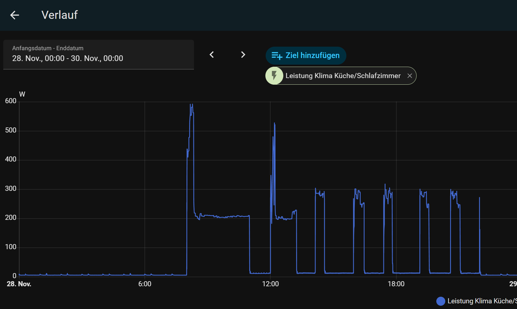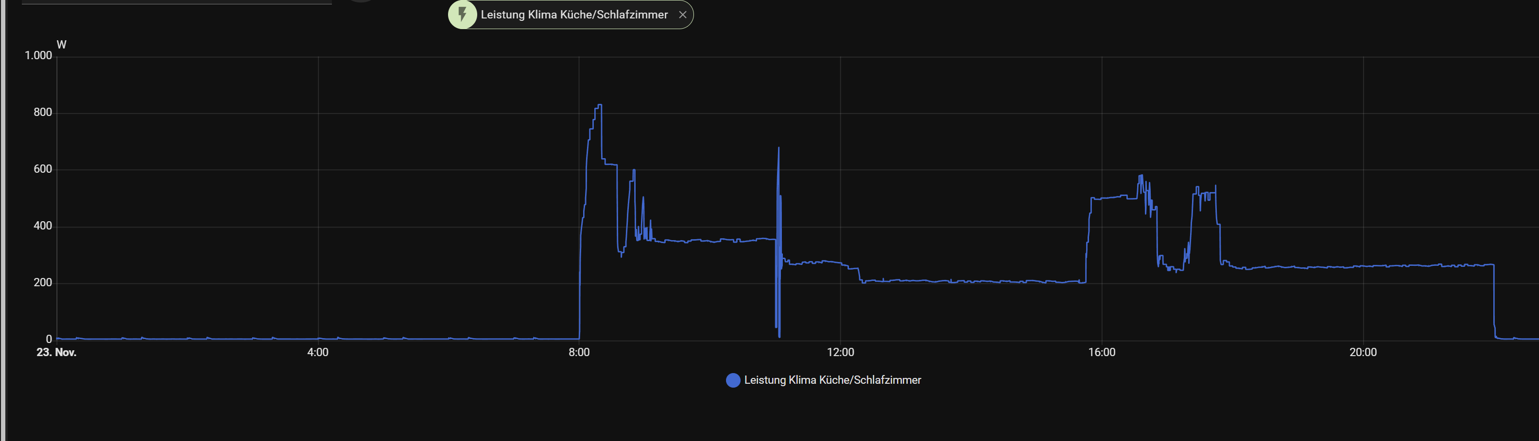 (Da ist ne kleine Spitze Mittags weil Klima Schlafzimmer erst um 12Uhr startet und Küche um 8 Uhr)