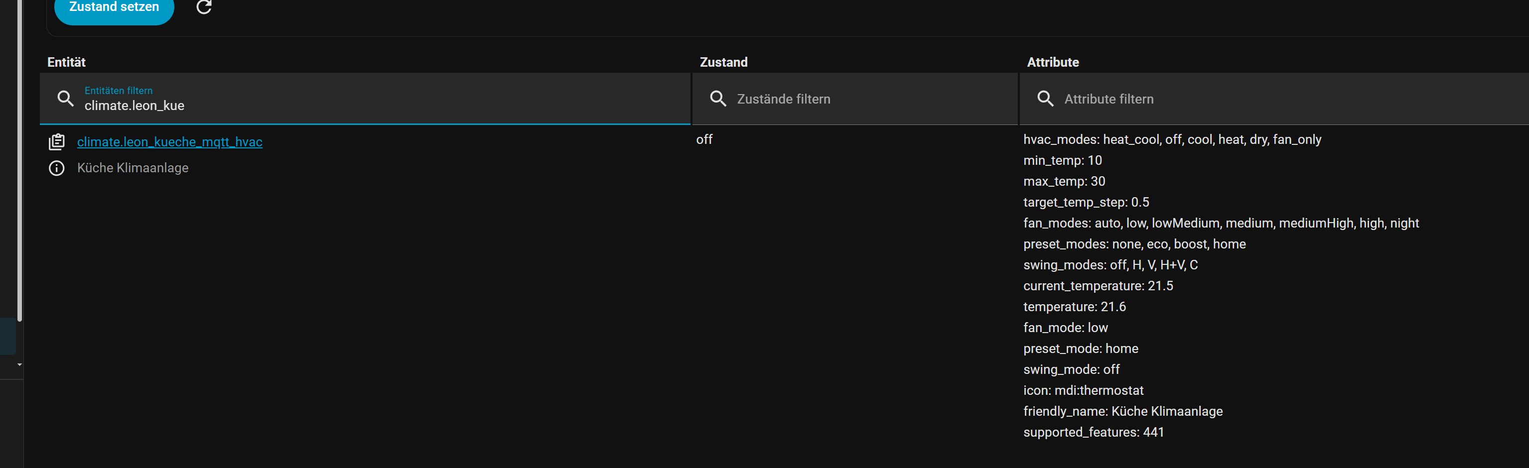 Was du alles für Werte hast mit Faikin bei den Innengeräten kannst du ja unter “Entwicklerwerkzeuge → Zustände” ansehen.