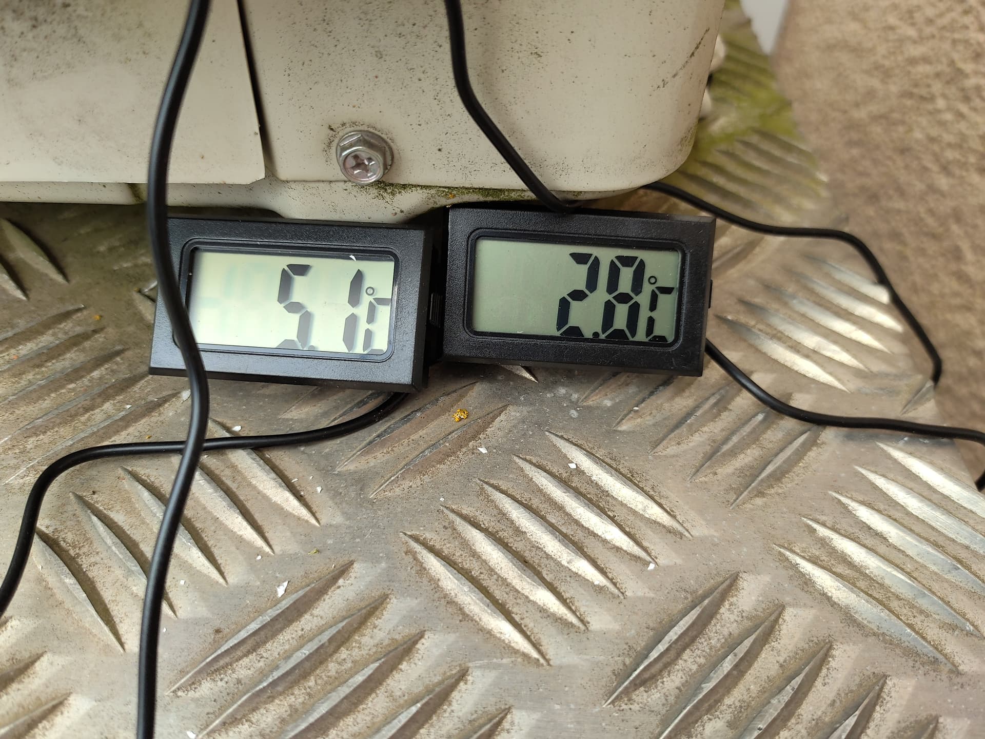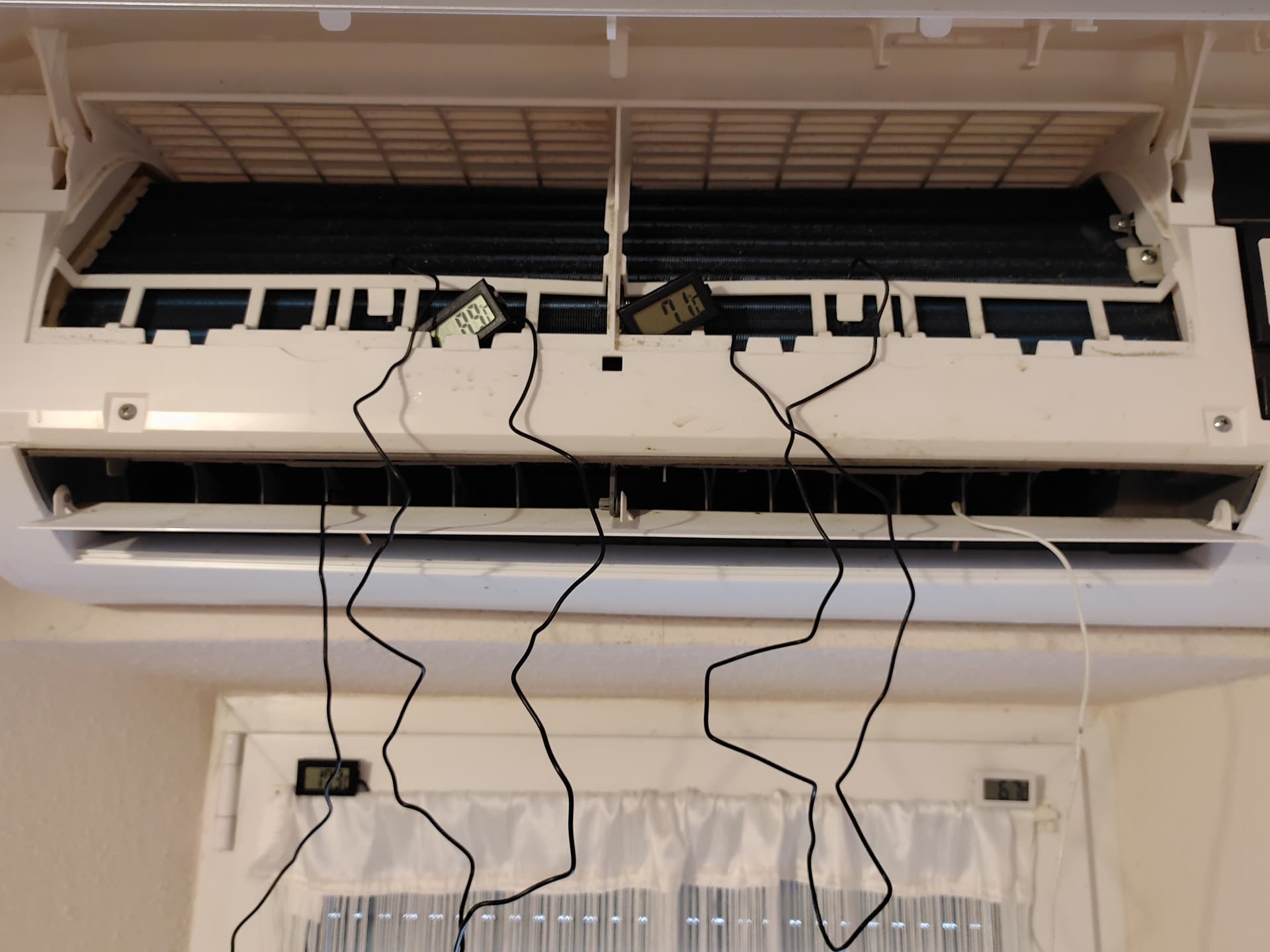 Innengerät links habe ich dann eine Ausströmtemperatur von sagenhaften 17 Grad, während rechts am Innengerät 7 Grad heraus kommen.