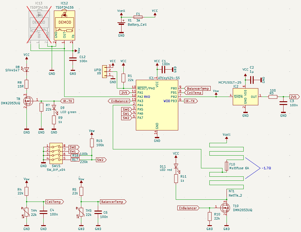 Im Moment kostet der Balancer ca. 16 Cent für den Transistor und 11 Cent für die Multifuse.