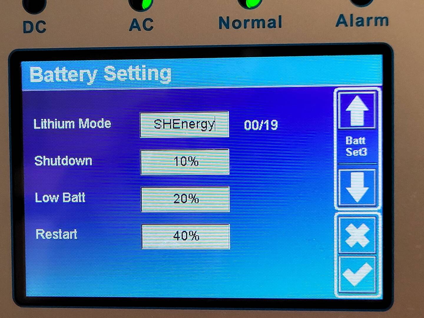 Habe eingestellt, Load first, Battery und max. Ladestrom auf 80A begrenzt. Trotzdem ist die Batterie meist gegen Mittag voll, dann wird noch kräftig eingespeist oder Auto geladen. Der Akku steht dann ca.5-6 Stunden voll, bis Entladung startet. Da ich eine Wärmepumpe habe und Warmwassersperre und Nachtabsenkung nur bis 6 Uhr morgens gehen, holt sie sich auch noch das ein oder andere Watt aus dem Akku. Hatte ihn im Mai bisher 2-3 mal auf 20% und musste nachkaufen (Ärger).