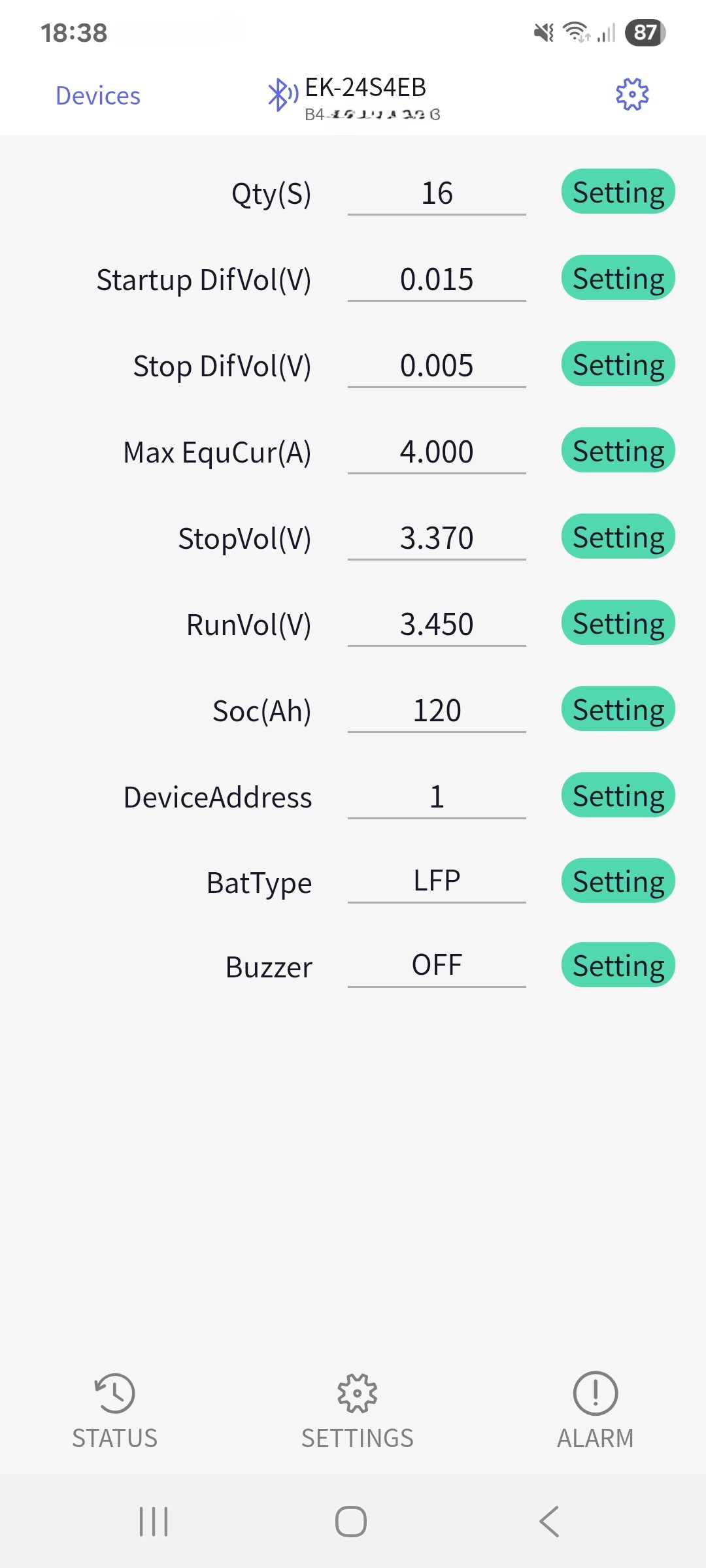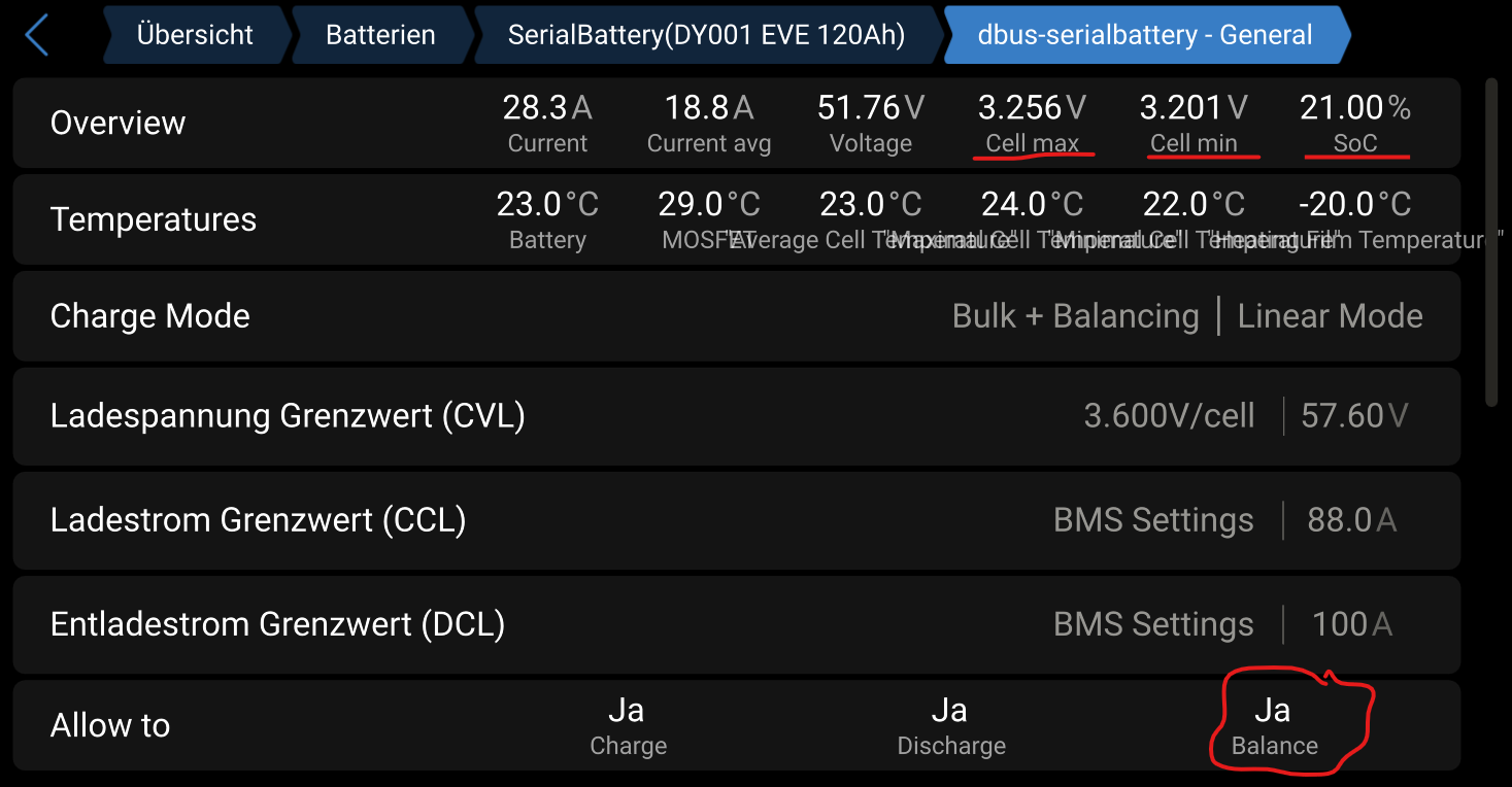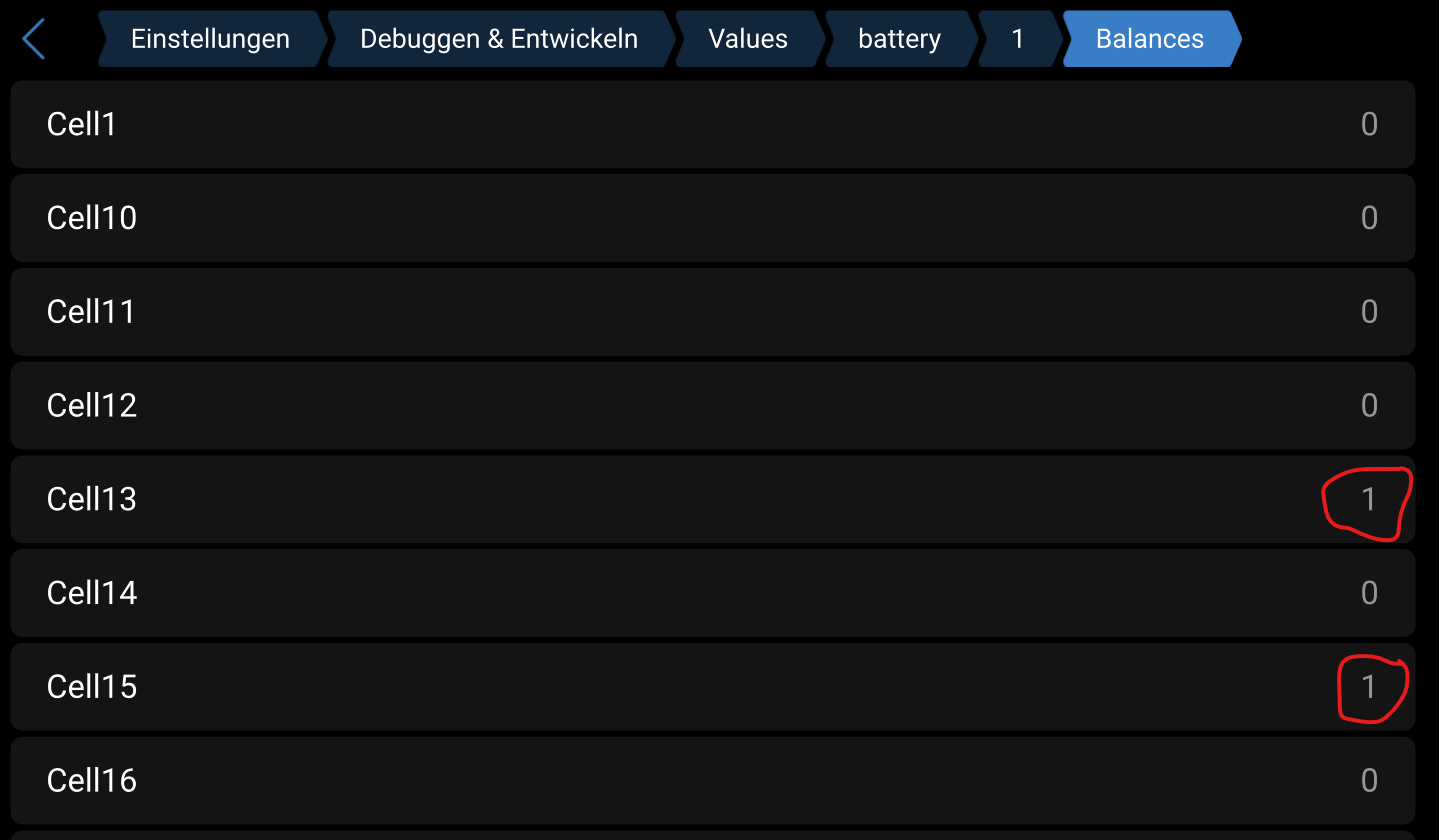 An fehlenden Ladungen kann es eigentlich nicht liegen, da ich die Akkus jede Nacht aufladen (OCTOPUS). Ich habe keine Möglichkeit die Einzelzellen zu prüfen, kann jedoch per IO Broker Einstellungen ändern.