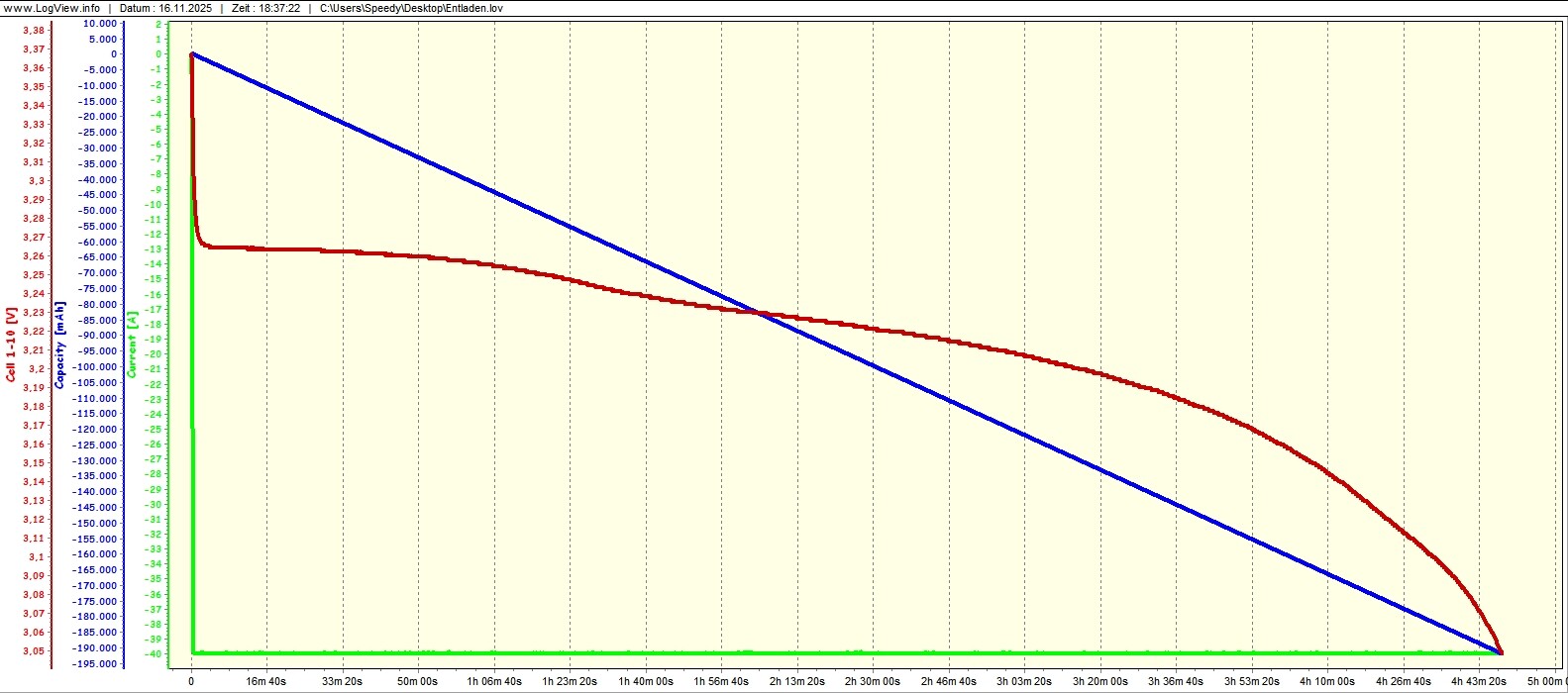 Ich habs mir nicht nochmal alles durchgelesen, aber ja das der Balancer vom BMS wohl Müll ist steht außer Frage. Das was er jetzt noch neues geschrieben hat ist für mich nur schwer zu lesen und zu deuten, nicht böse gemeint, mir aber zu anstrengend. Eine Ladeschlussspannung von über 3,55V/Zelle ist jedenfalls trotzdem noch viel zu hoch, da ist es kein Wunder das man beim Ladestrom eingreifen muss damit die OVP vom BMS nicht dicht macht (wie hoch auch immer die eingestellt ist). Die Spannungen steigen ab 3,45V/Zelle rasant nach oben weil die Zellen hier bereits voll sind. Über Probleme beim Balancing und das der Balancer dann nicht hinterher kommt braucht man sich dann nicht wundern. Bei mir sind 3,55V/Zelle OVP und maximal 3,45V/Zelle Ladeschlussspannung bzw. 3,425V aktuell. Mehr braucht es nicht zum voll laden, und es schaft gleichzeitig noch genügend Luft nach oben zu den eingstellten 3,55V/Zelle OVP, nämlich genau ~100mv (bei euren BMS dann sogar noch mehr). Würde hier die OVP auslösen dann weiß man das was mit den Ladezuständen der Zellen bzw. dem Balancing nicht stimmt. Jedes korrekt eingestellte, abgestimmte und aufgebaute System braucht kein steuern und somit reduzieren des Ladestromes zb. durch das BMS, weil das ganze problemlos durch die CV-Phase selbst erledigt wird wenn der Strom bei erreichen der Ladeschlussspannug automatisch am sinken ist. Korrekt eingestellter guter Balancer, Ladeschlussspanung usw. sind wie gesagt Vorraussetzung dafür.... bei den gennannten Einstellungen wundert es mich nicht das nix hinhaut. Auch seine Einstellung vom NEEY sind nicht zu empfehlen! Aber ich habe ehrlich gesagt auch schon genug mit ihm darüber diskutiert, drum darf er und jeder andere auch das ganze natürlich gerne so "fahren" wie er möchte. Wenn man Problemen aus dem Weg gehen möchte stellt man das ganze jedenfalls anders ein, und es ist hier im Forum auch schon gefühlt 1000x ausführlich besprochen wurden.