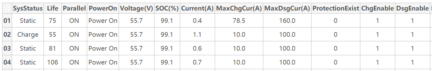Eine weitere Beobachtung meinerseits zu diesem 100%-SOC-Phänomen, bzw. zu dieser beschießener SOC-Berechnung von DEYE. Nachdem ich meine Batterie gestern wiederbelebt hatte, hatte ich sie langsam “hochgezogen” und mich gleich gewundert, dass die Batterie bereits bei 53,5V ihre 100% SOC erreicht hat und abgeschaltet hat. Sprich: Wie dort der SOC geschätzt wird und warum es so ist, wie es ist, wissen vermutlich nur die Entwickler von diesem beschießenen BMS. Ich muss natürlich gestehen, dass ich immer noch die alte Firmware 3002 vom Auslieferungszustand vor 2 Jahren habe. Dennoch glaube ich nicht, dass die neueren Firmwares den SOC besser beherrschen. Da ich keinen DEYE-Umrichter habe und nicht in diesem DEYE-Universum hänge, kann ich die Firmware nur “zufuss” flaschen. Dafür muss ich sie mir zunächst besorgen.