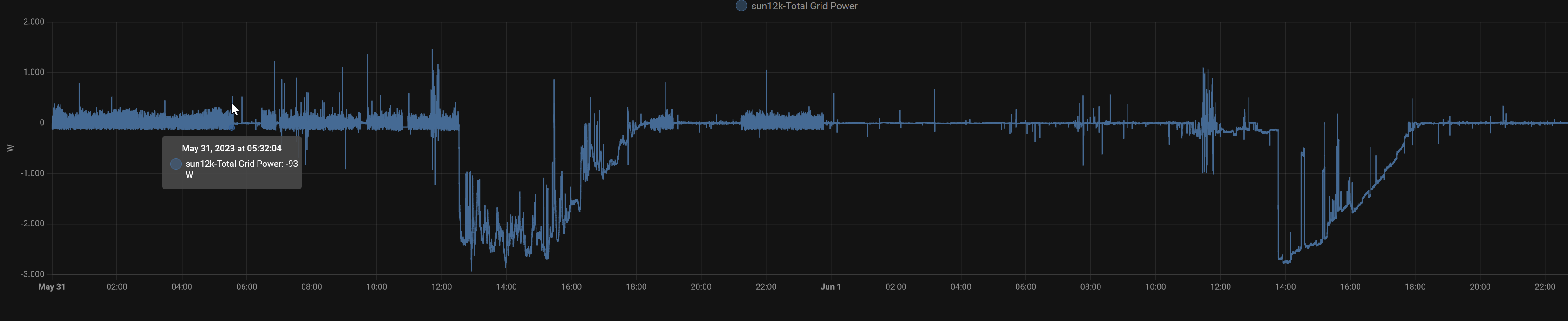 Wenn man sich das anschaut, 31. mit µINV Input und 1. ohne... In der Nacht wo mein HM600 aus ist, kann der halt nicht dafür verantwortlich sein. Komischerweise schafft er es zeitweise richtig zu reglen, gegen 6:00 Uhr am 31. ist es für eine Stunde prima.