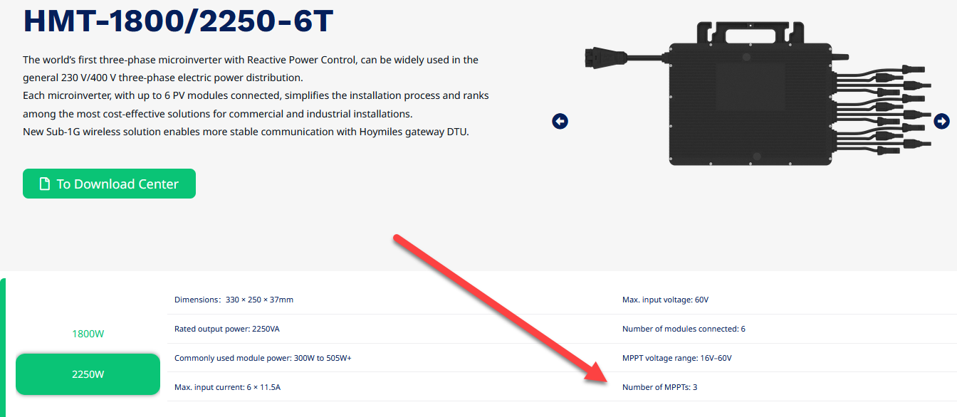Danke Auric für die schnelle Antwort, das mit den 3 MPPTs hab ich auch gesehen, allerdings stand in einem Beitrag der Zeitschrift ct ("Ab aufs Dach"), dass genau dieses Modell über 6 MPPTs verfügt. Aber vermutlich weiß es der Hersteller besser und das Datenblatt stimmt doch...