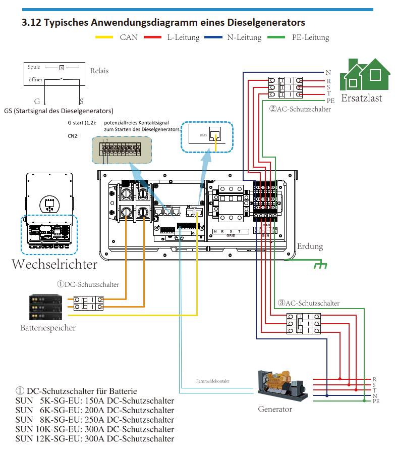 Die Nachhängende/Voreilende Neutralleiter Geschichte ist wichtig wenn du einen manuellen Bypss um den Deye herum haben willst (was immer zu empfehlen ist) dazu hat sich der Sontheimer bewährt